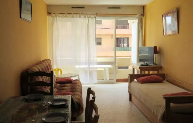Close to the beach and shops for this studio apartment located on the 2nd floor with elevator and balcony. It consists of a main room / living room with sofa bed for 2 people, two 90 cm pull-out beds, television, equipped kitchenette, microwave, refrigerator top hob, oven.