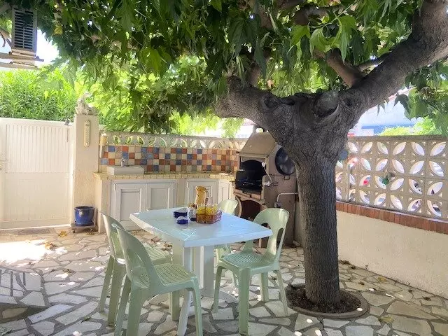You will find two bedrooms with a double bed and wardrobe, a bathroom with separate toilet. Large shaded terrace with outdoor furniture, built-in barbecue, and closet with washing machine.