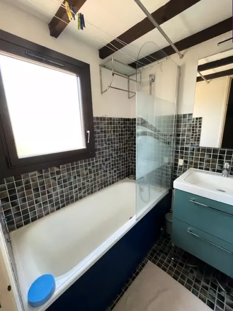 And finally, on the second floor, you will find a bedroom with a 140 cm bed and a chest of drawers, a second bedroom with two 90 cm beds and a wardrobe, as well as a bathroom. Air conditioning upstairs.