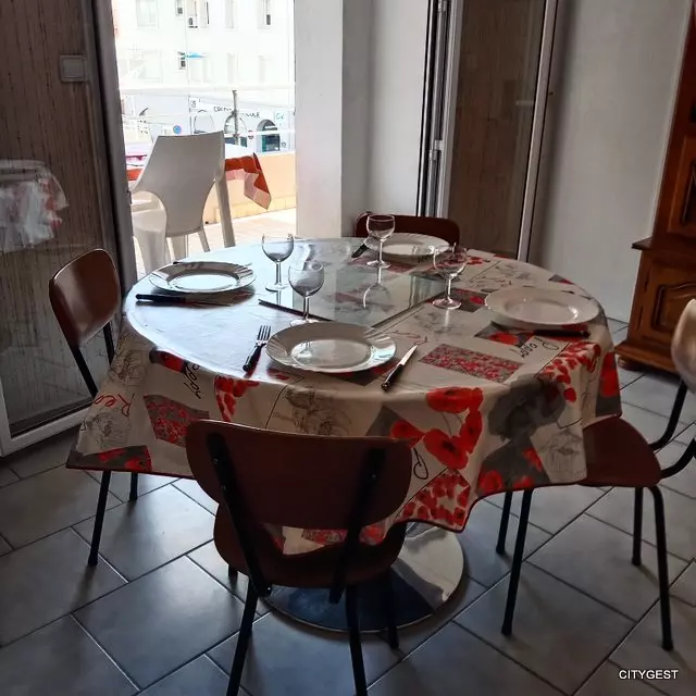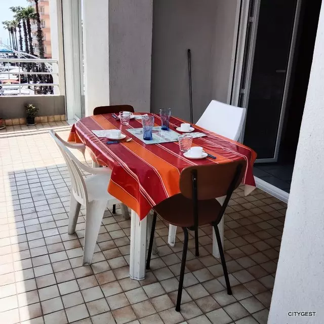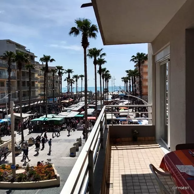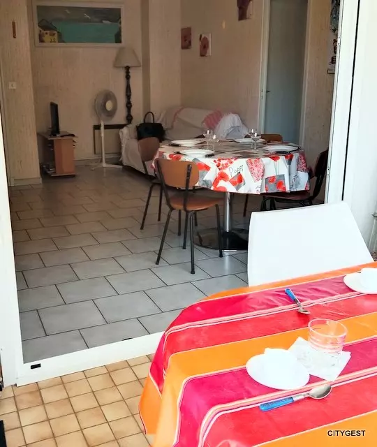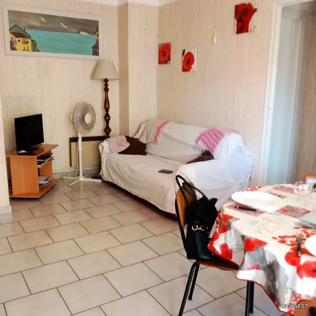 Panoramic view for this apartment located a stone's throw from the beach, close to the center and shops. It consists of a main room / living room with a sofa bed for 2 people, television, a fully equipped kitchen, microwave, hob, fridge freezer, oven.