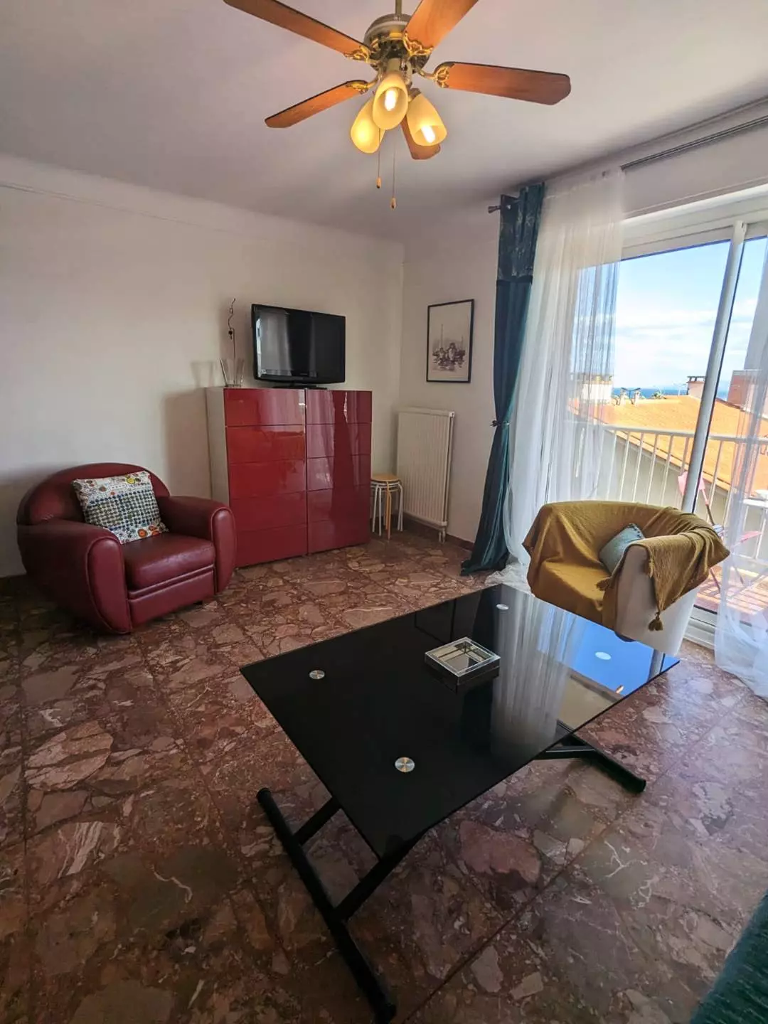 It consists of an entrance hall, a bright living room with a 140cm convertible leather sofa opening onto a balcony with a sea view, a double bedroom, a modern and functional fitted kitchen with fridge freezer, ceramic hob, microwave, oven, washing machine... and a bathroom and separate WC.
