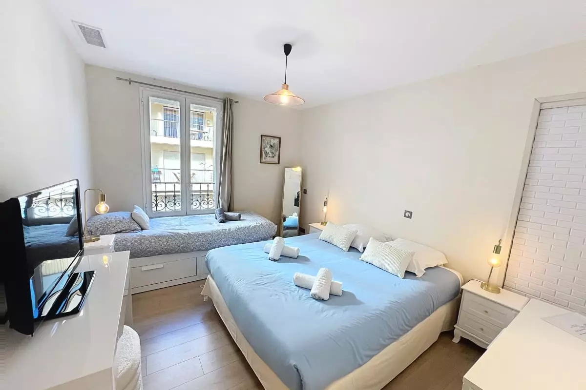 Spacious and modern, very bright 80m² apartment on the 2nd and top floor of a small townhouse. It can accommodate up to 7 people.