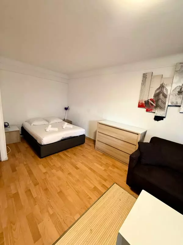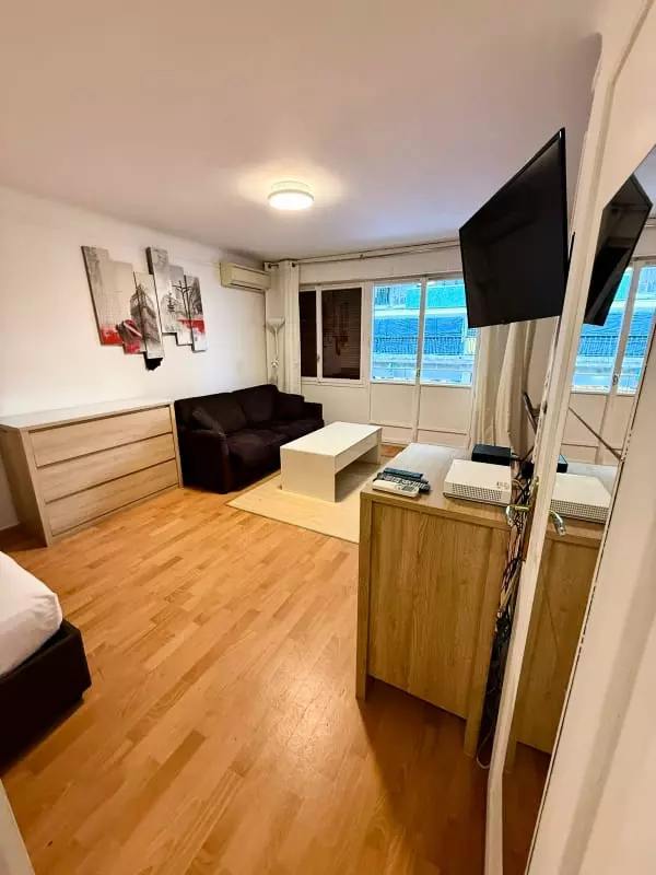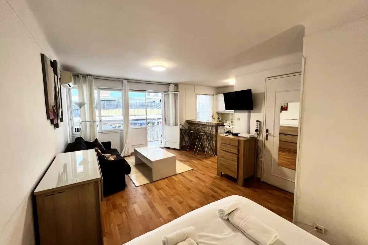 Studio apartment in a secure building, located on the 1st floor. All shops are nearby, 400m from the Croisette and 80m from Rue d'Antibes.