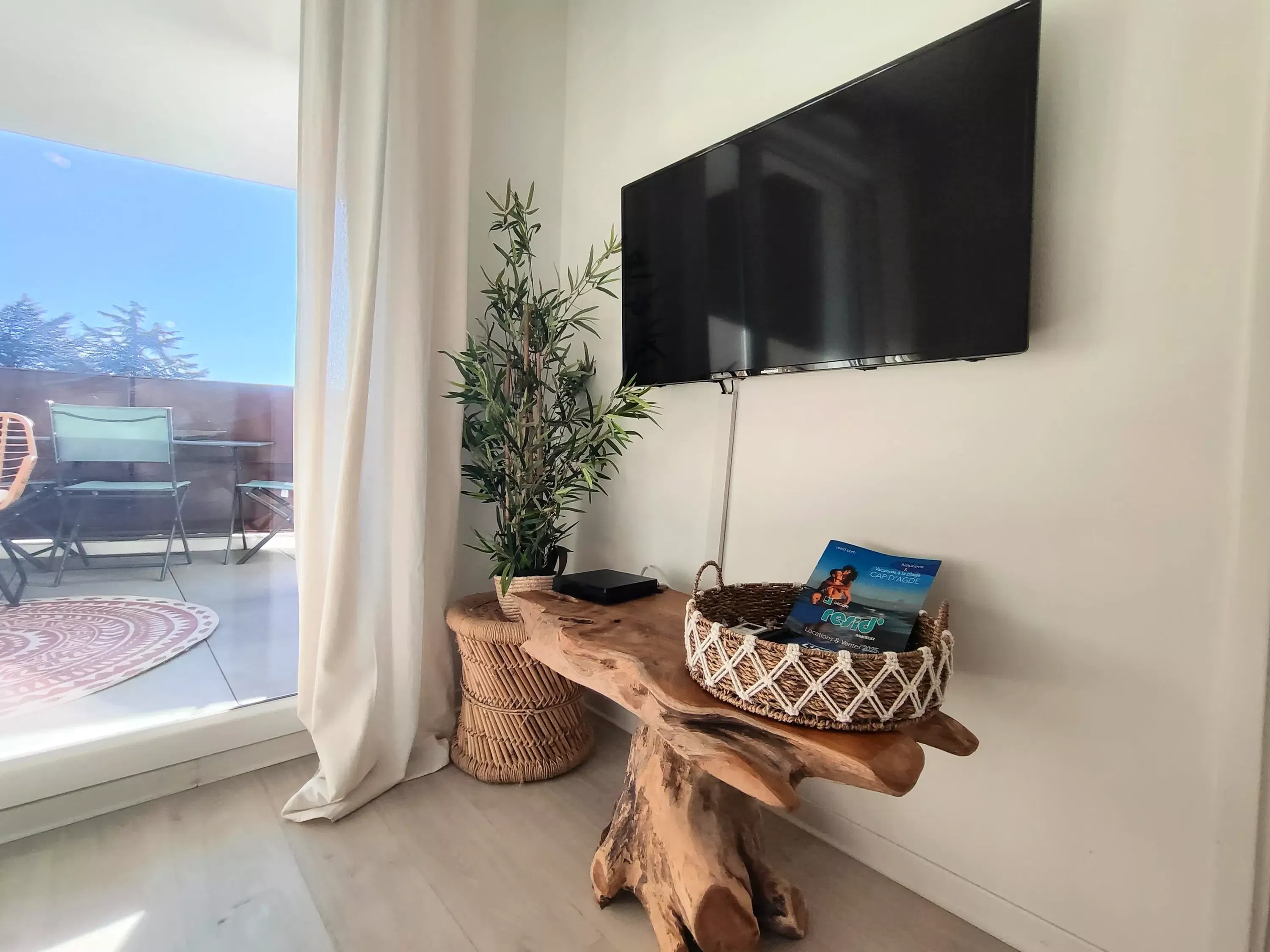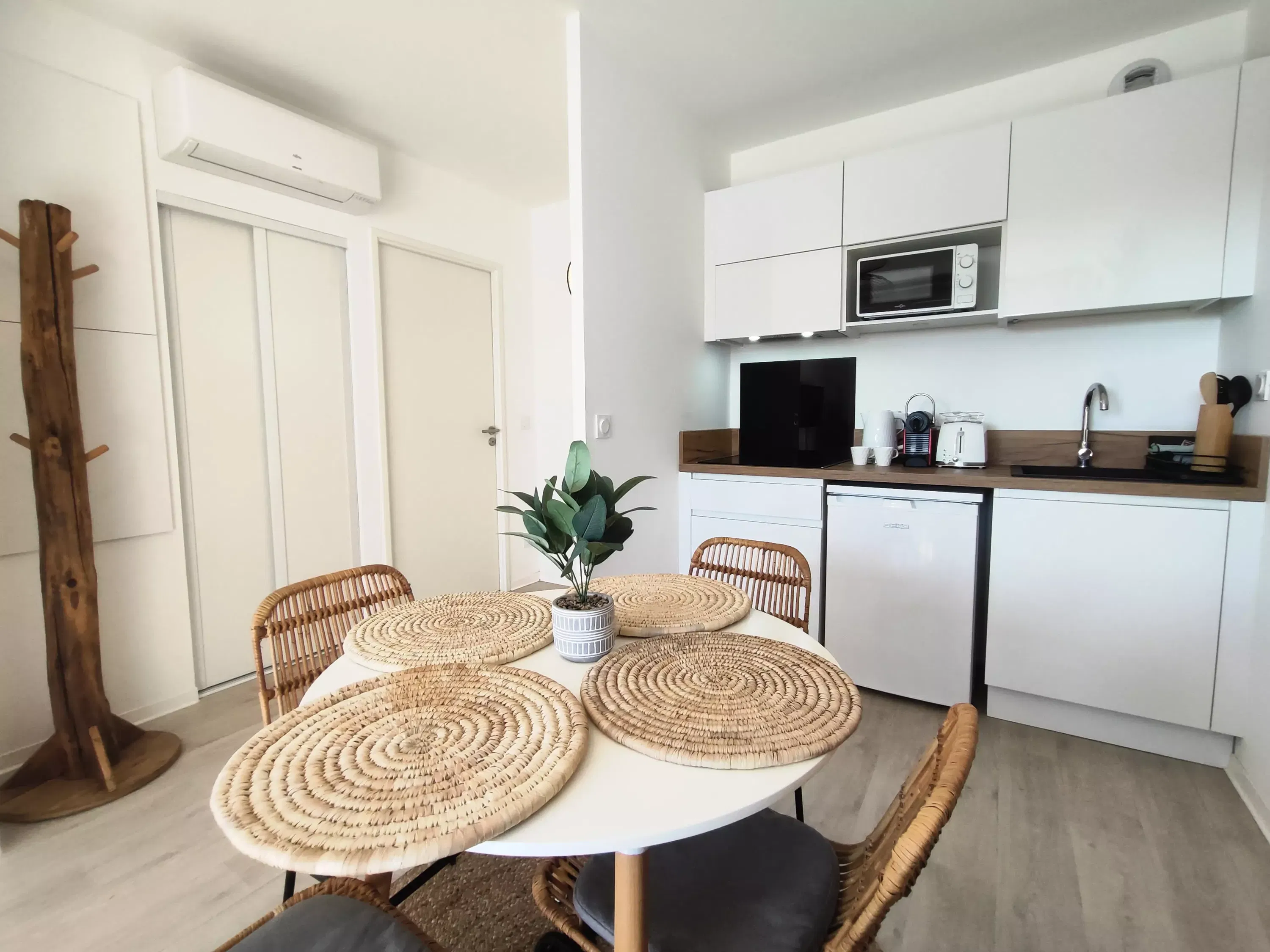 Air-conditioned 2-room apartment for 2 to 4 people, 2nd floor with elevator in the Wellness residence with view of the tennis courts. Equipped kitchen area: Nespresso coffee maker, refrigerator with freezer and microwave. In the living room a rapido sofa for 2 people. In the bedroom a bed 160 cm. Shower room with toilet. Terrace. Shared gym. Shared laundry: washing machine and dryer. Parking n°49.