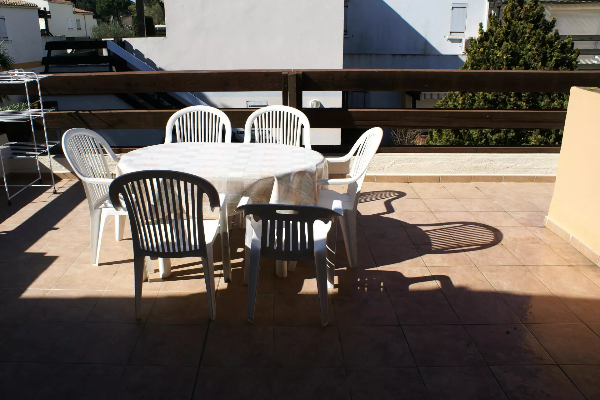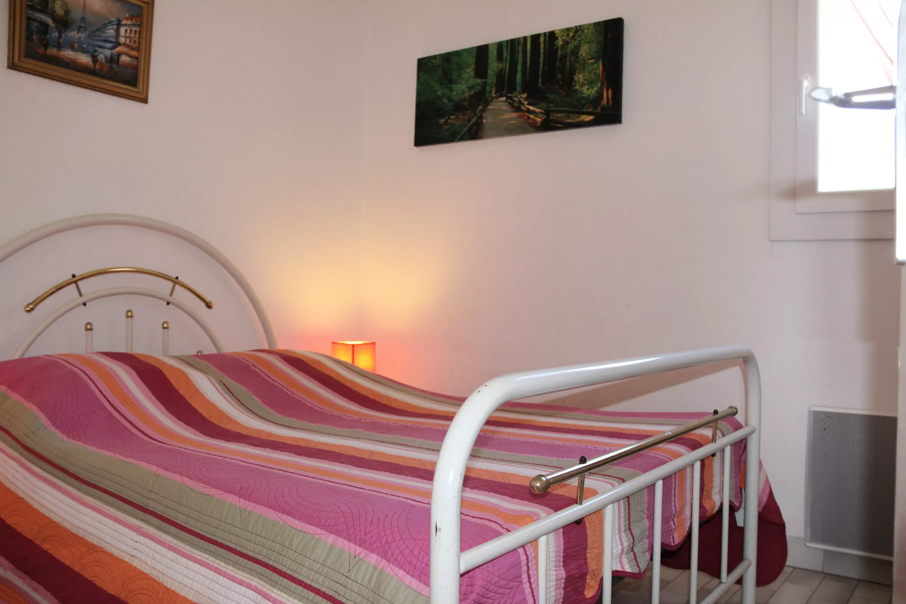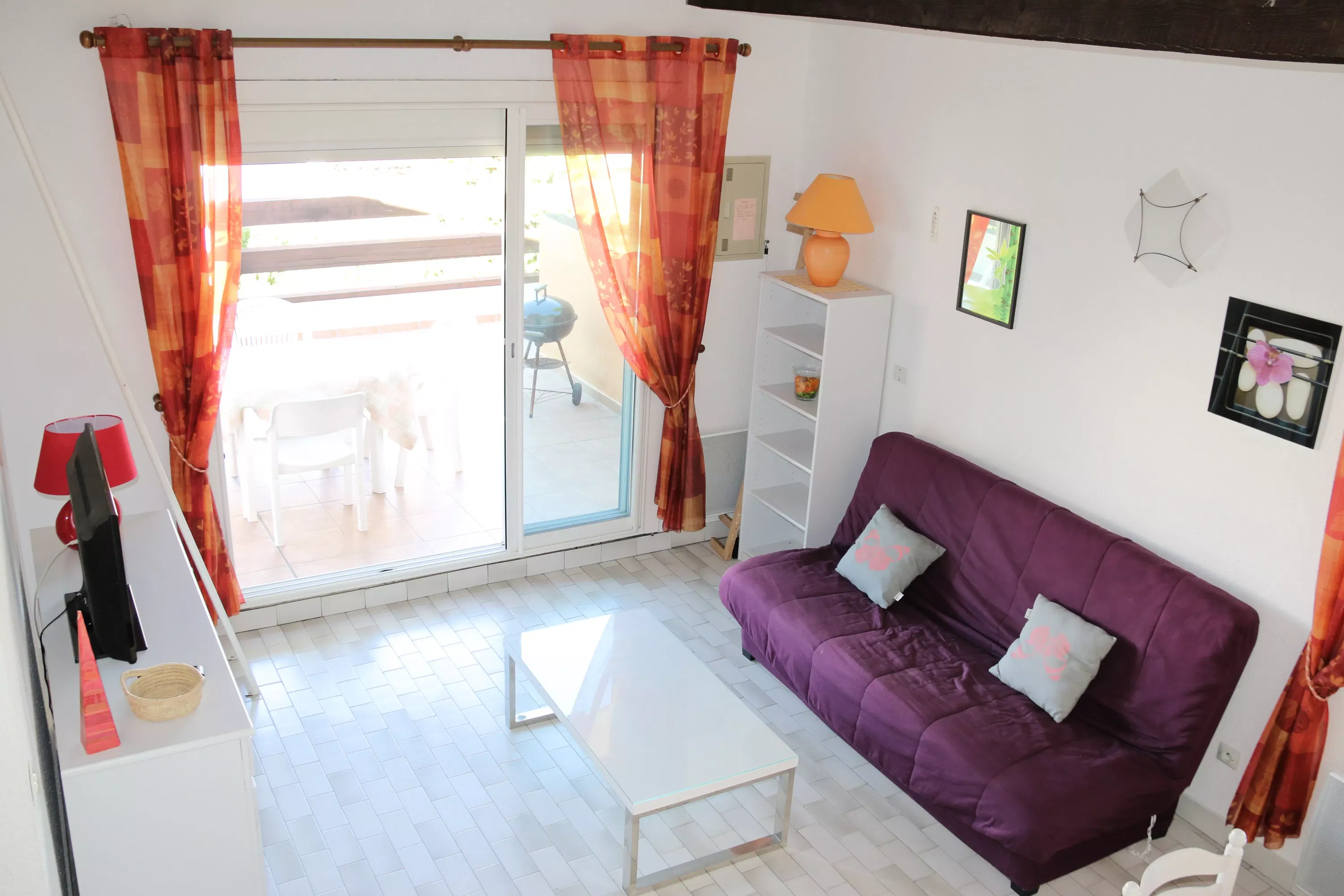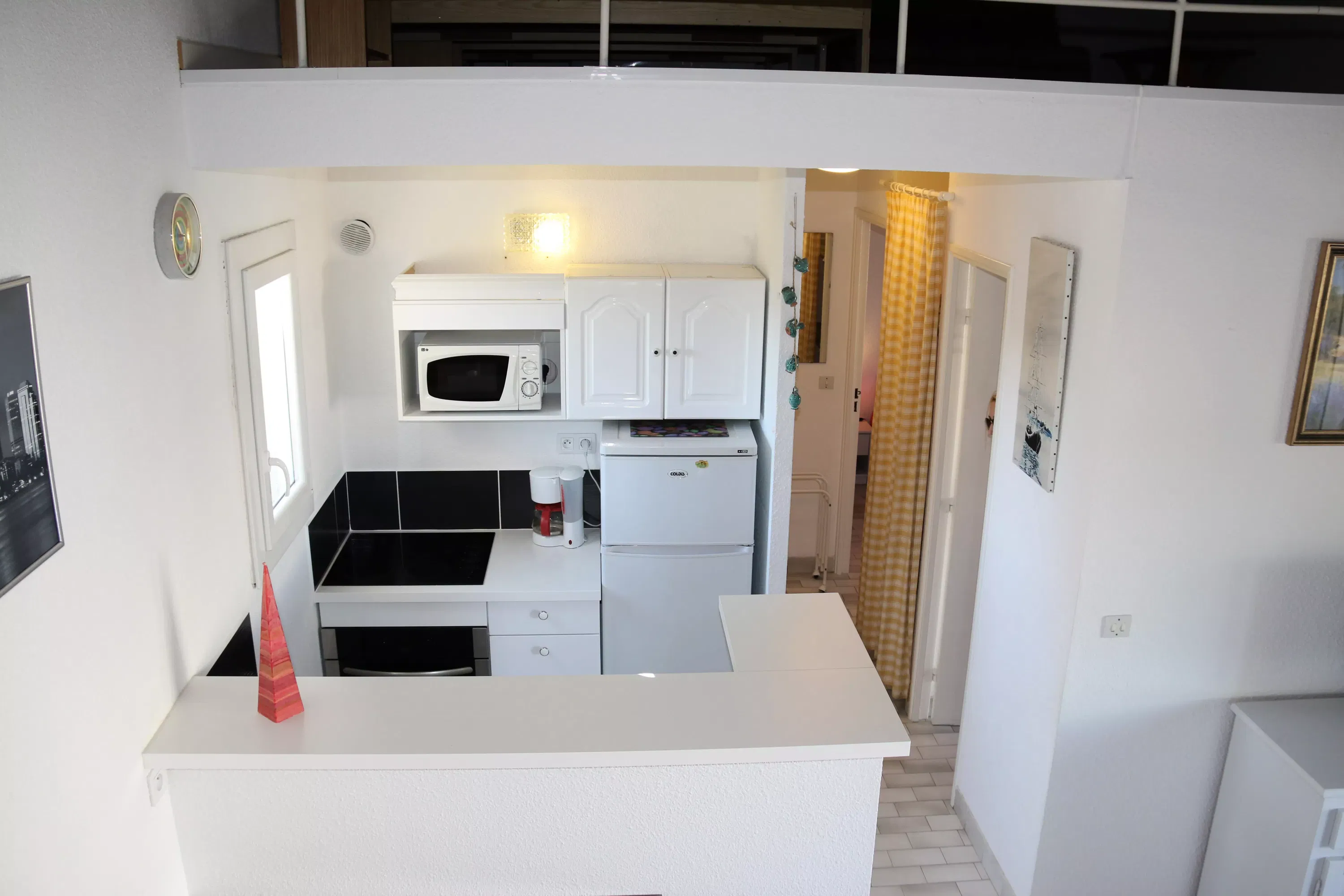 Air-conditioned apartment for 6 people, located in the Tennis Village Residence, block 18, on the 1st floor. Free access to the swimming pool. Living room with equipped kitchenette: dishwasher, washing machine and microwave. One bedroom with a 140 cm bed. A cabin with 2 bunk beds. A mezzanine with 2 twin beds. Shower room with separate toilet. Terrace with awning and barbecue. Parking N°1809.