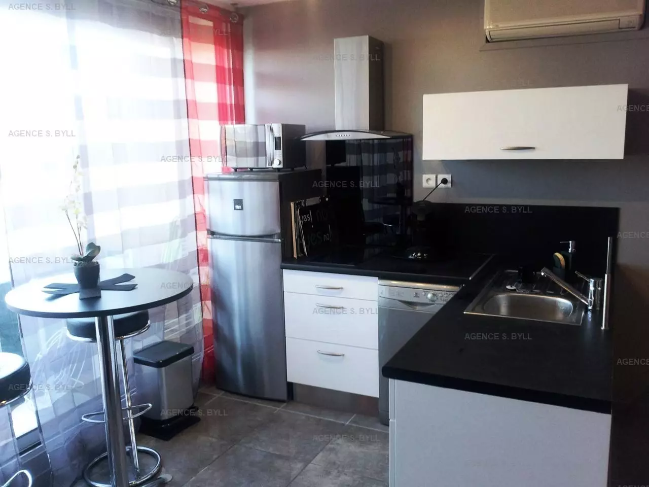 Beautiful, fully renovated, modern apartment. Facing northwest, its terrace is sunny in the morning and much of the afternoon. The corner kitchenette, next to the large terrace (approx. 40m²), is very well-equipped. The living room is furnished with a real 140cm bed and has air conditioning.