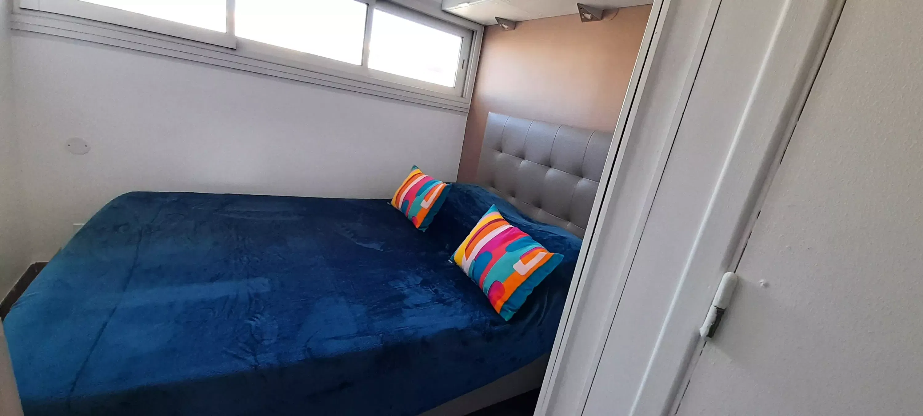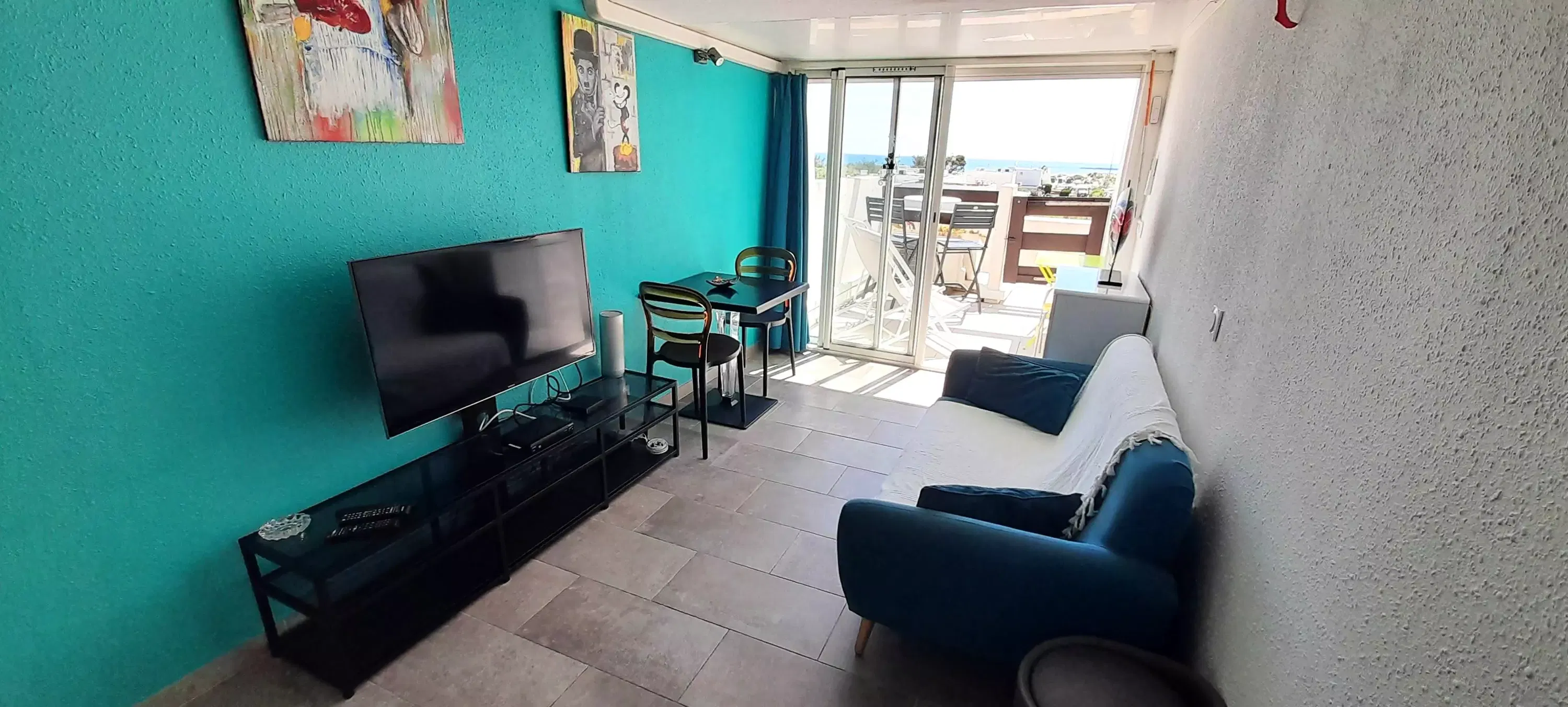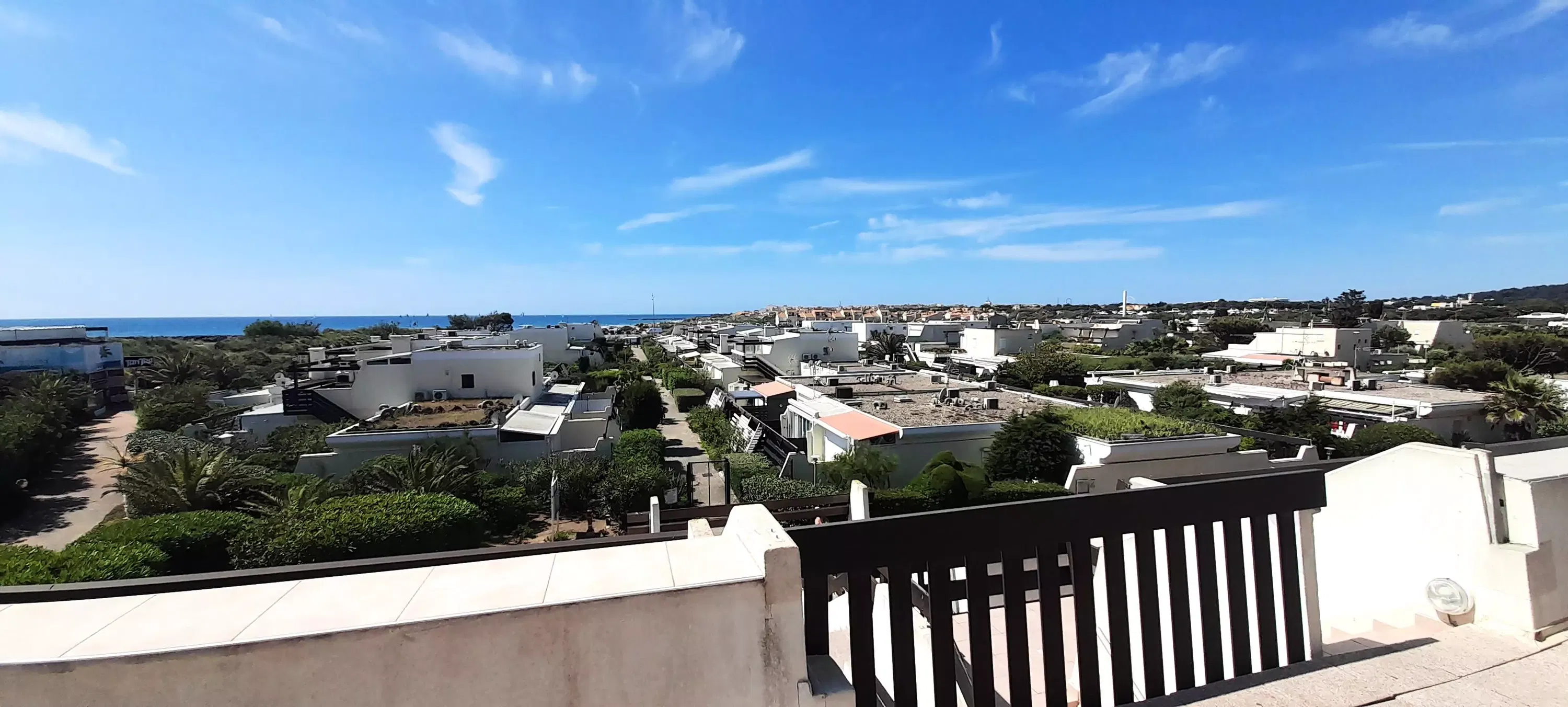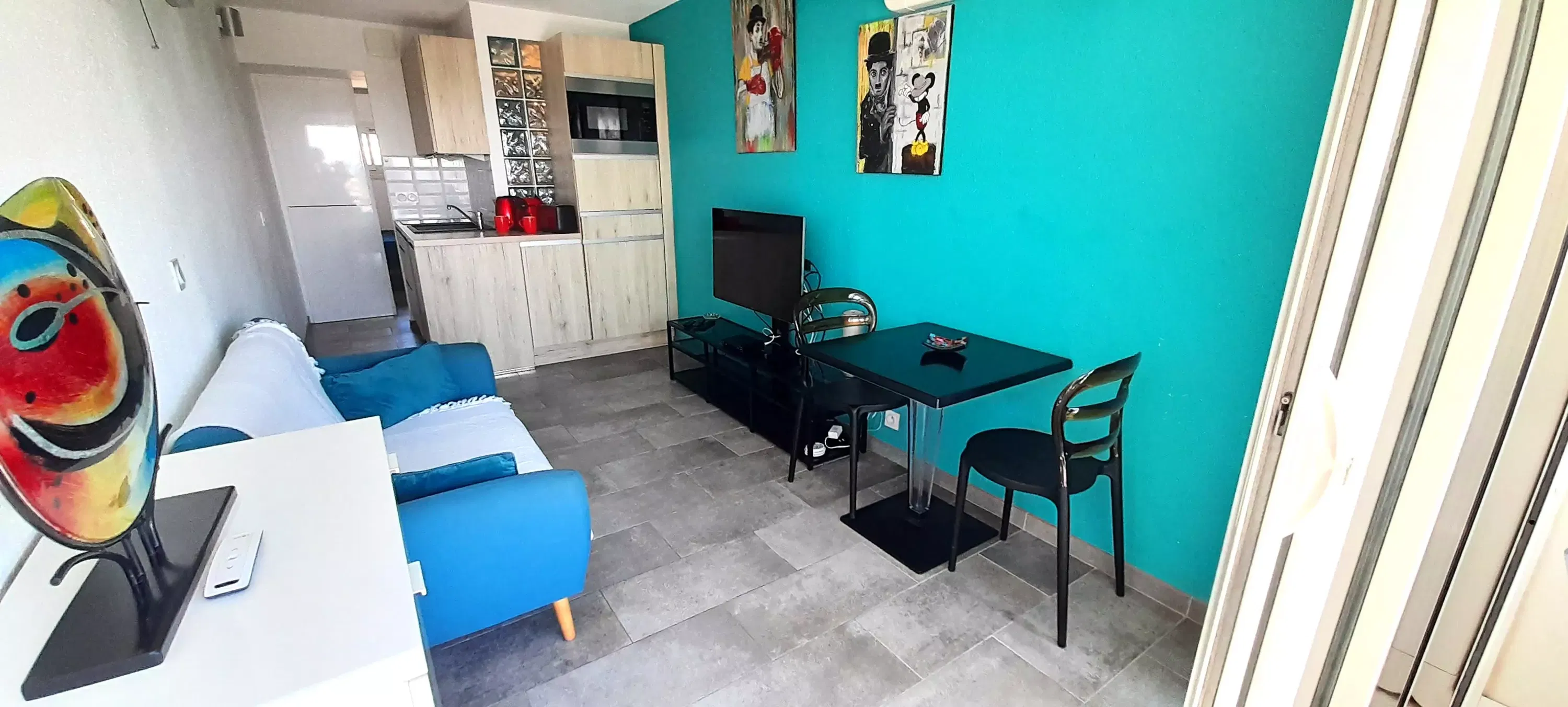 Air-conditioned apartment for 2 people in Port Nature colline 2, on the 2nd floor without elevator, along the corridor. South orientation. A small bedroom with a 140 cm bed. Kitchenette with large refrigerator, microwave, Nespresso and filter coffee machine, kettle, toaster, television, safe, vacuum cleaner, small washing machine and hairdryer. Sea view. Terrace and awning. WIFI. Parking n° 21.