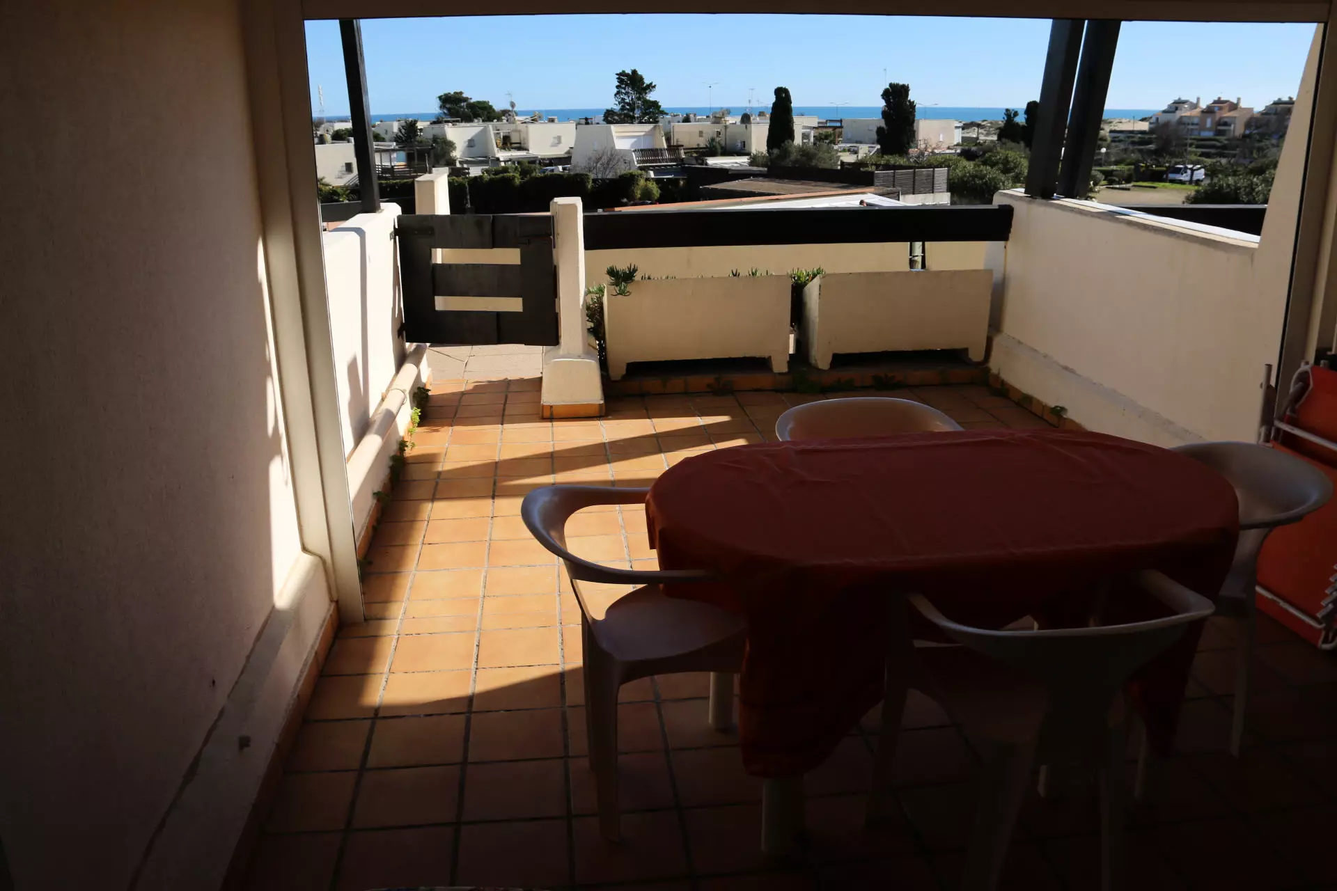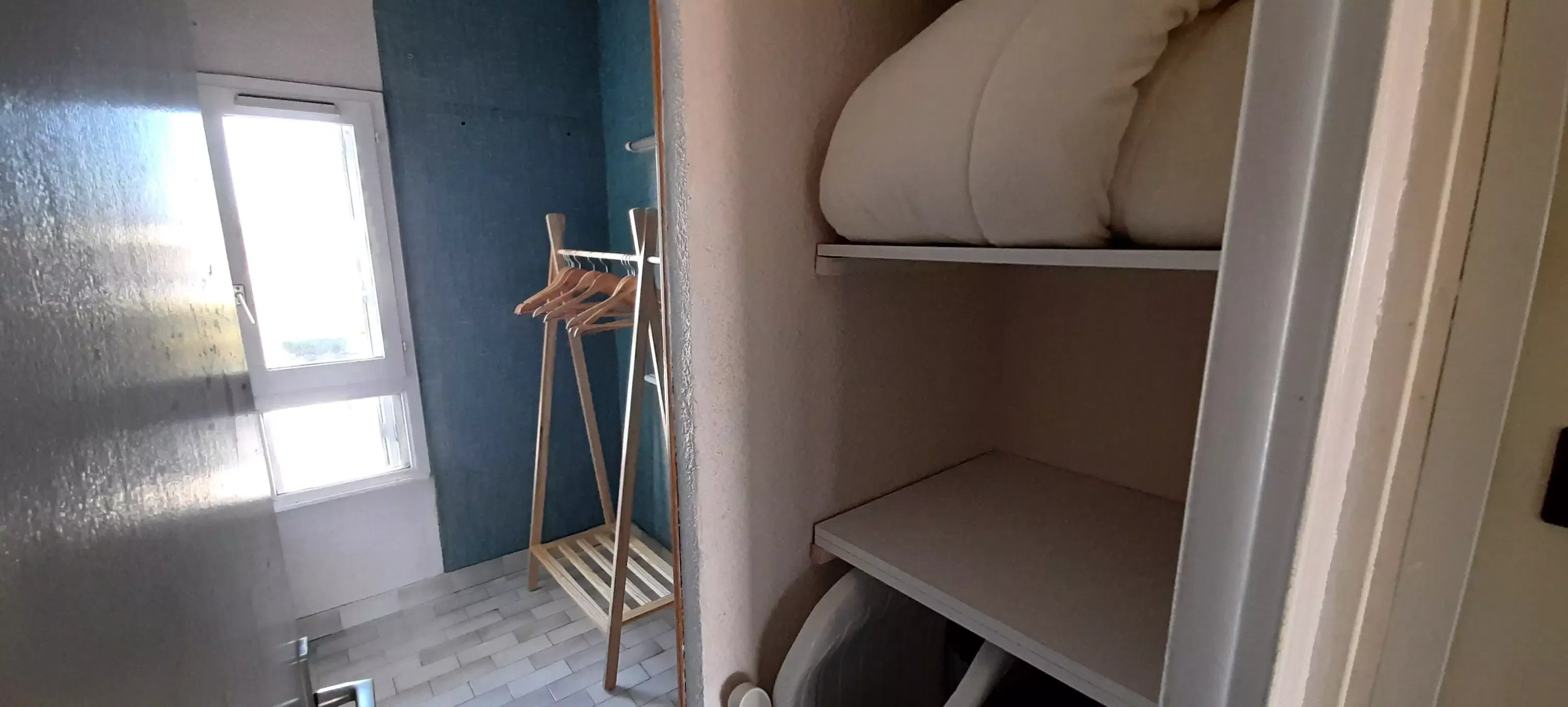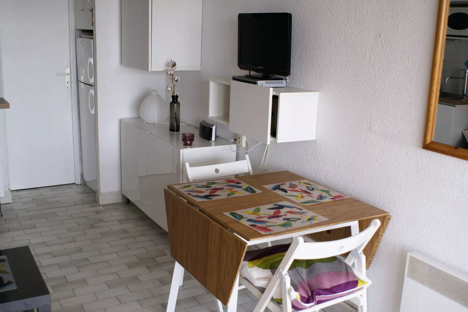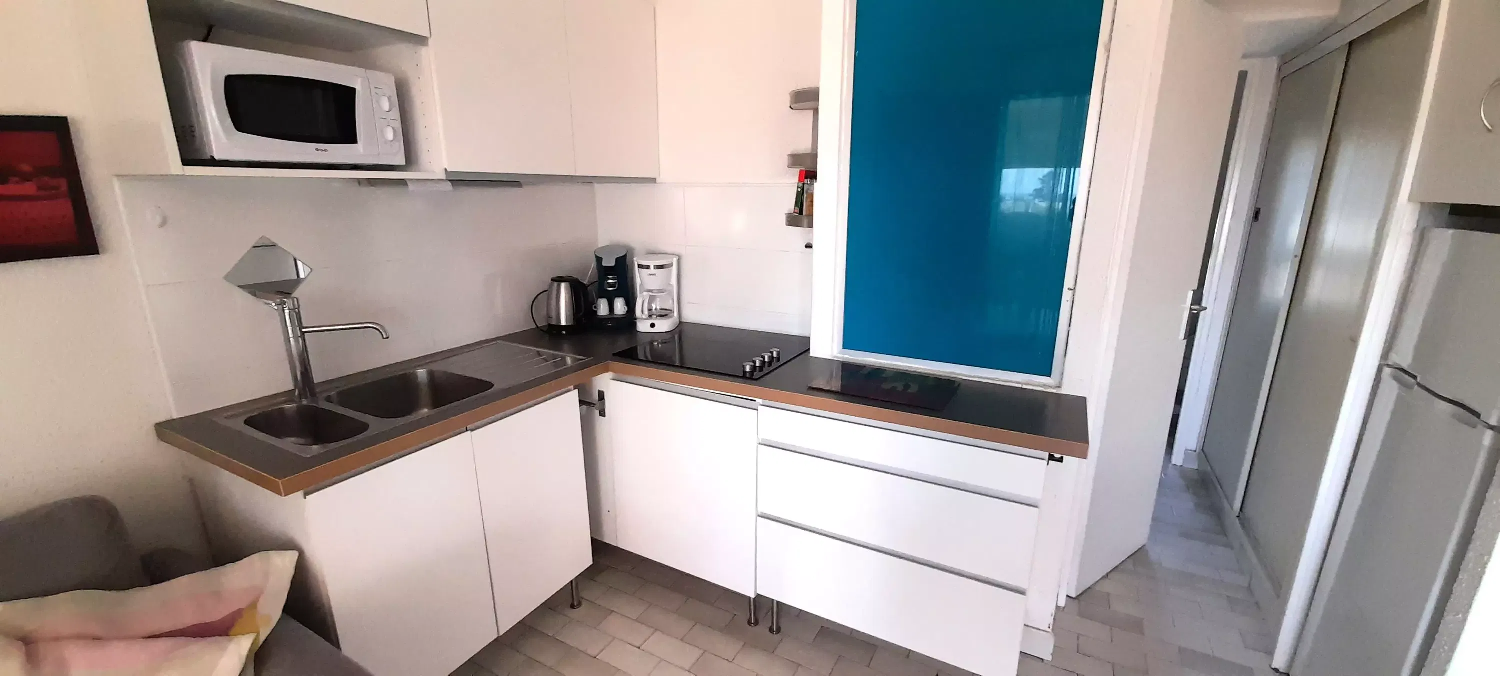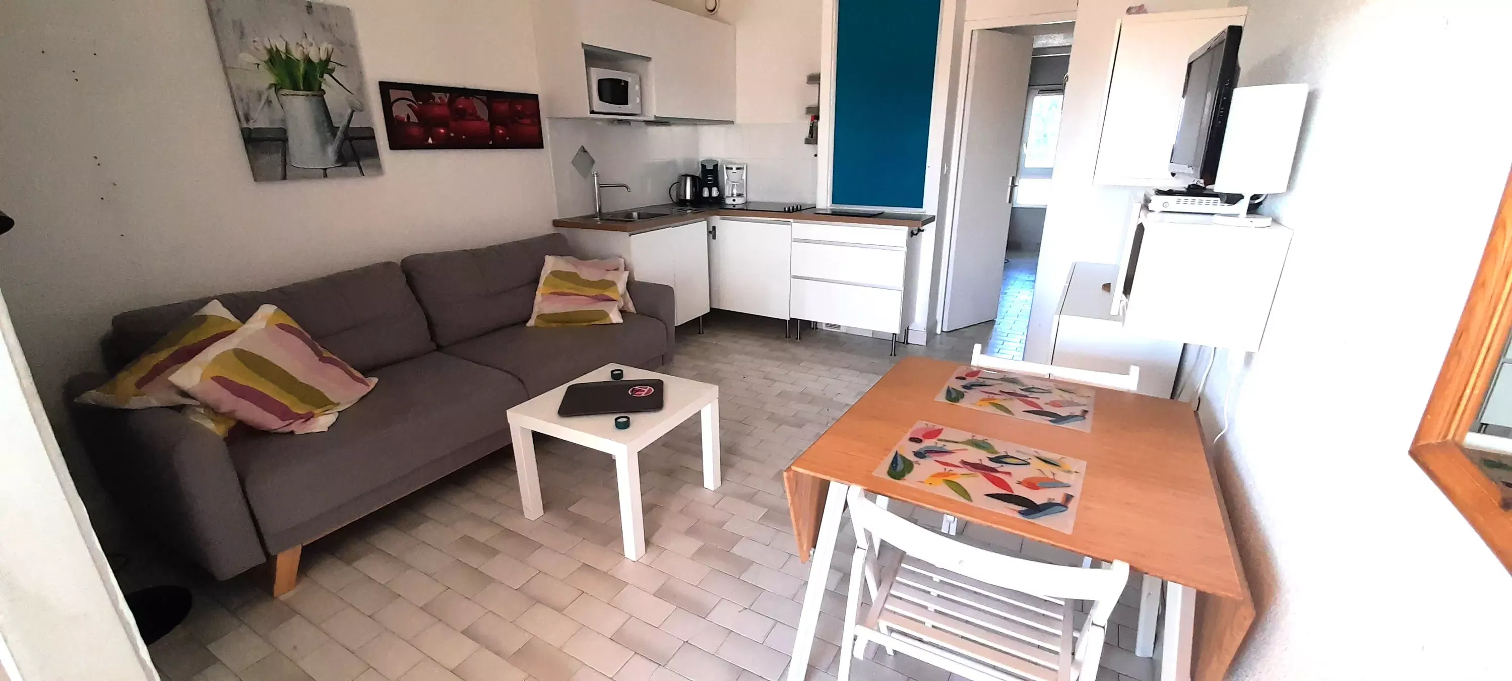 2-room apartment with a cabin for 4 people, located in Port Nature Colline 5, on the 2nd floor with elevator. Living room with sofa bed. One bedroom with a 140cm bed. Kitchenette with microwave, Senseo coffee maker, toaster... Shower room and separate toilet. Terrace. Parking N°5612.