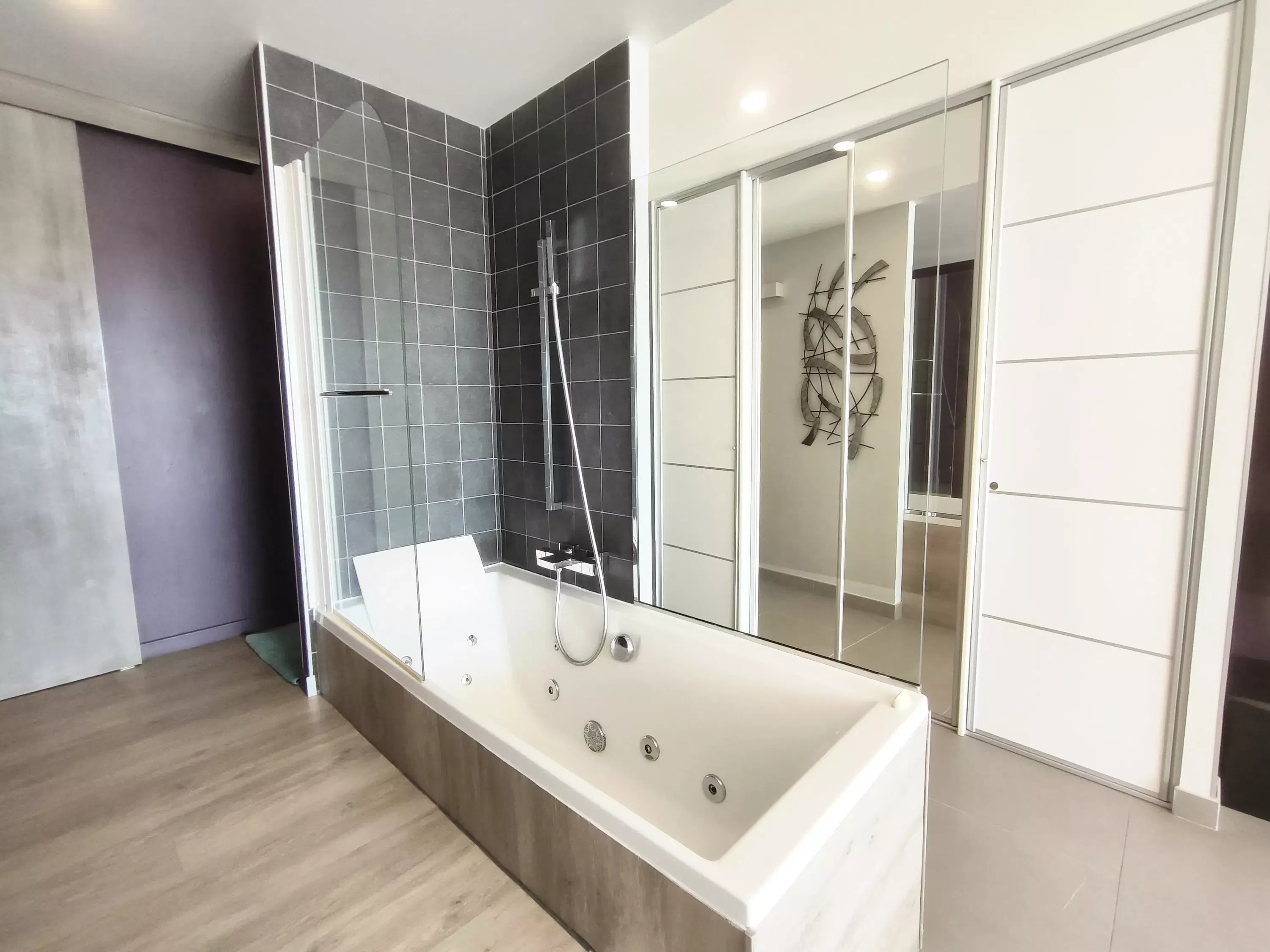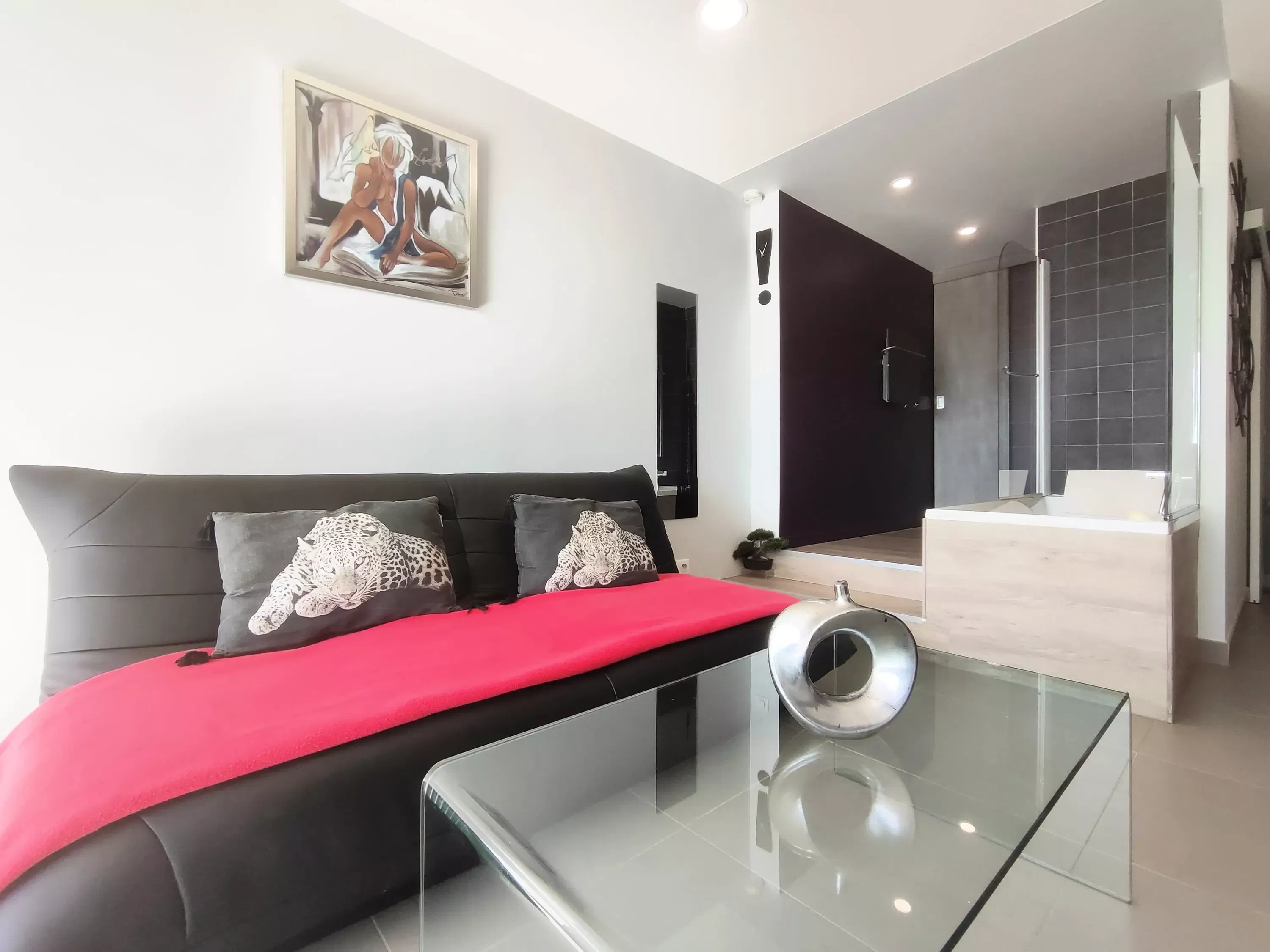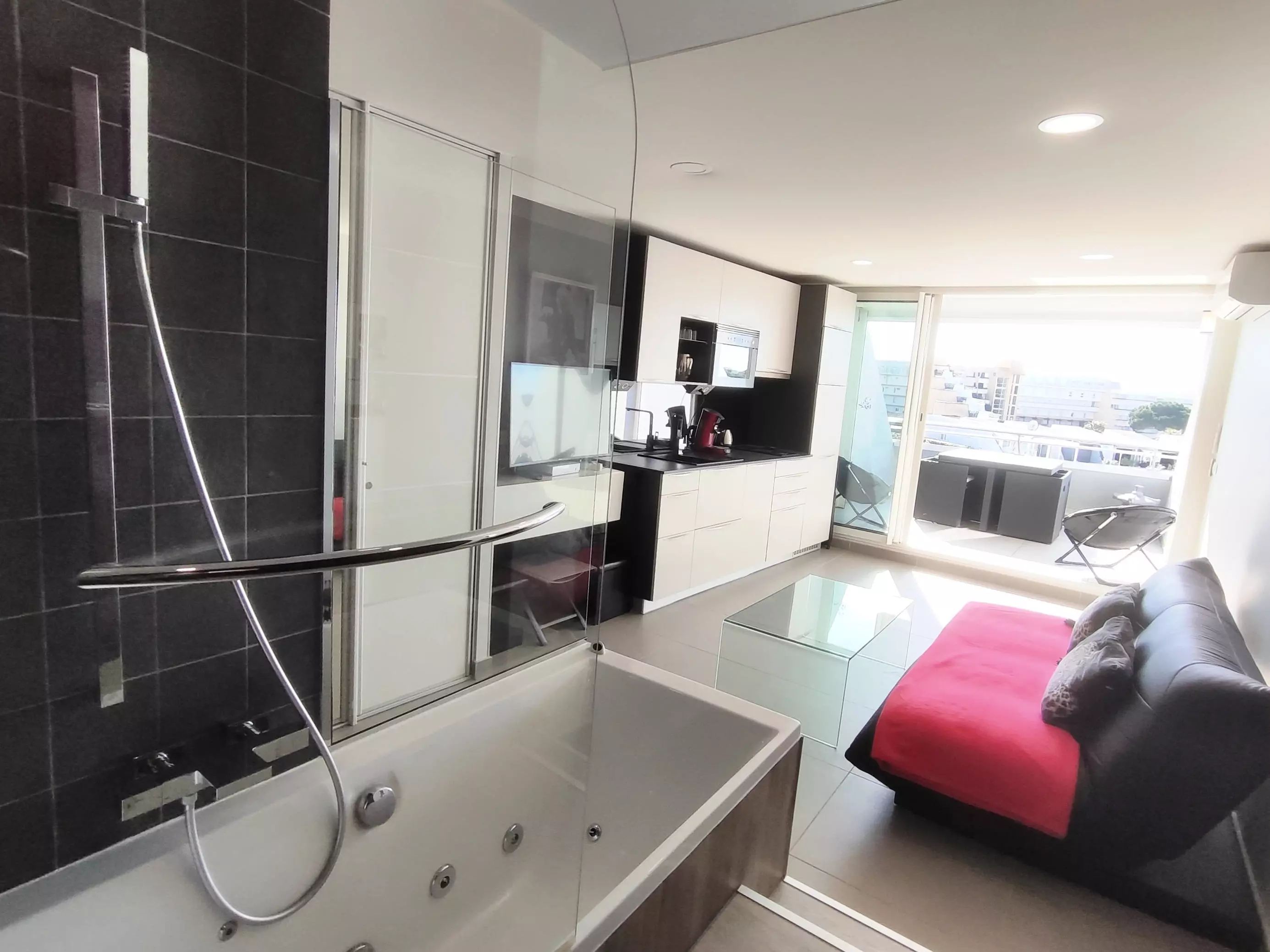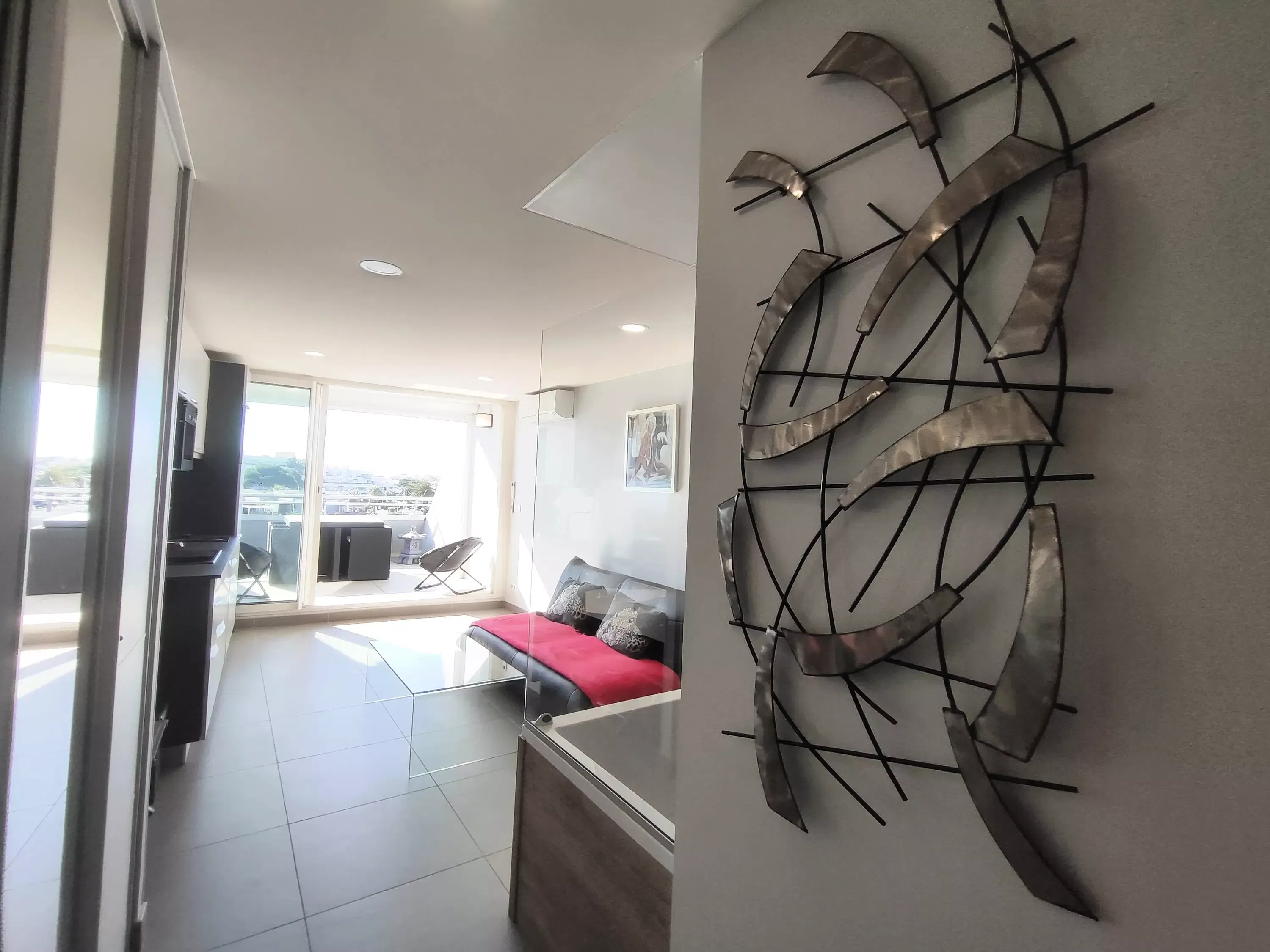 Air-conditioned apartment for 2 people, located in the Port Ambonne Residence. Bathroom with a whirlpool tub opens onto the living room. Equipped kitchen area (dishwasher, washing machine, microwave, oven, coffee maker, etc.)