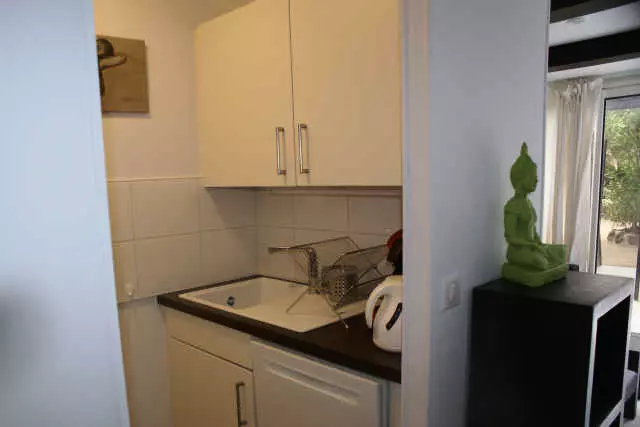 Air-conditioned ground-floor villa for 2 people, located in Port Nature Village, near the Tantra Club. Living room with equipped kitchenette (dishwasher, washing machine, microwave, etc.). Sleeping area with a 160cm double bed. Shower room open to the living room and sleeping area. Separate toilet. Terrace. Private parking N°413.
