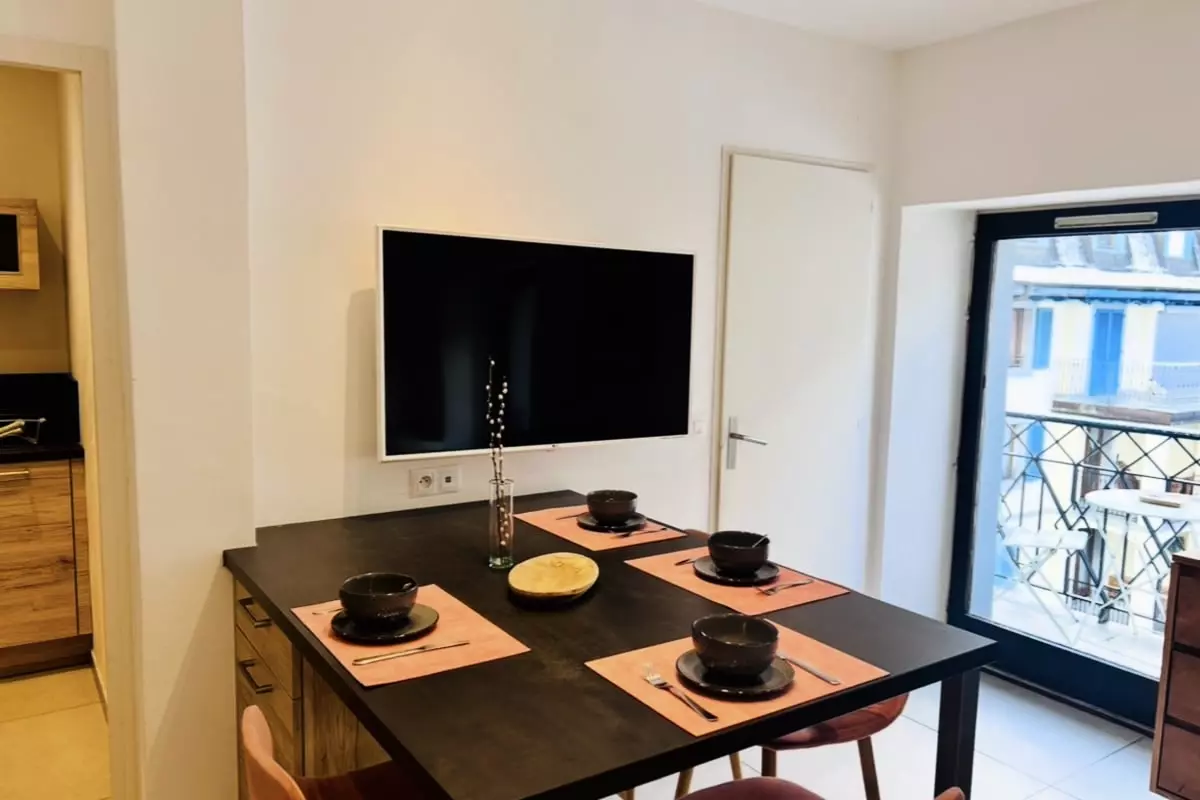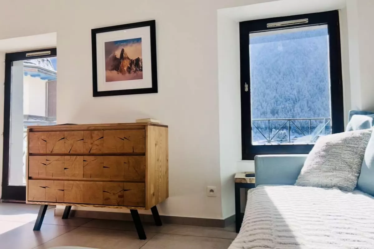 You can enjoy the balcony, equipped with a table with two chairs, to eat outside with a view of Mont Blanc.