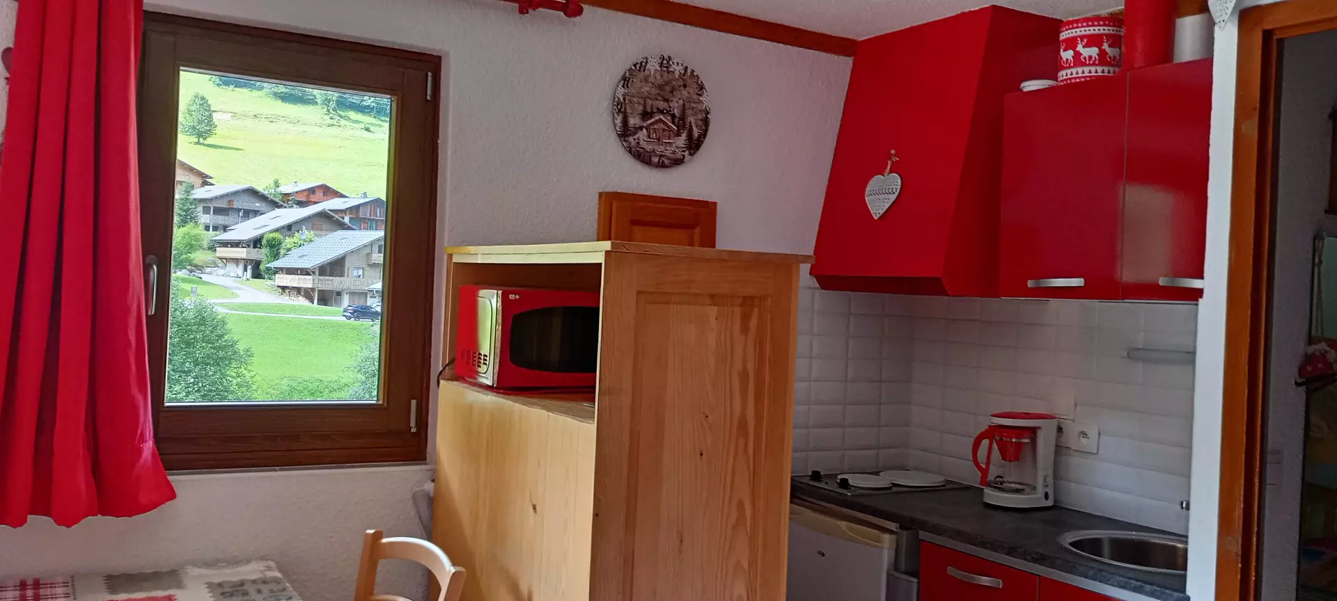 The kitchen is equipped with a hob, a filter coffee maker, a kettle, a toaster, a croque monsieur maker, a raclette maker and a fondue maker.