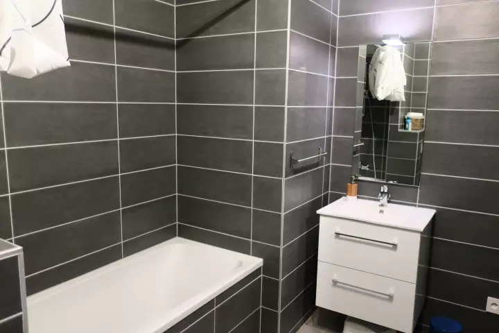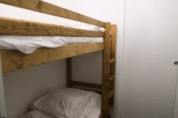 The apartment is composed of 2 bunk beds in the entrance located in the closed alcove, a double bed in the bedroom, and a sofa bed for 2 people in the living room.