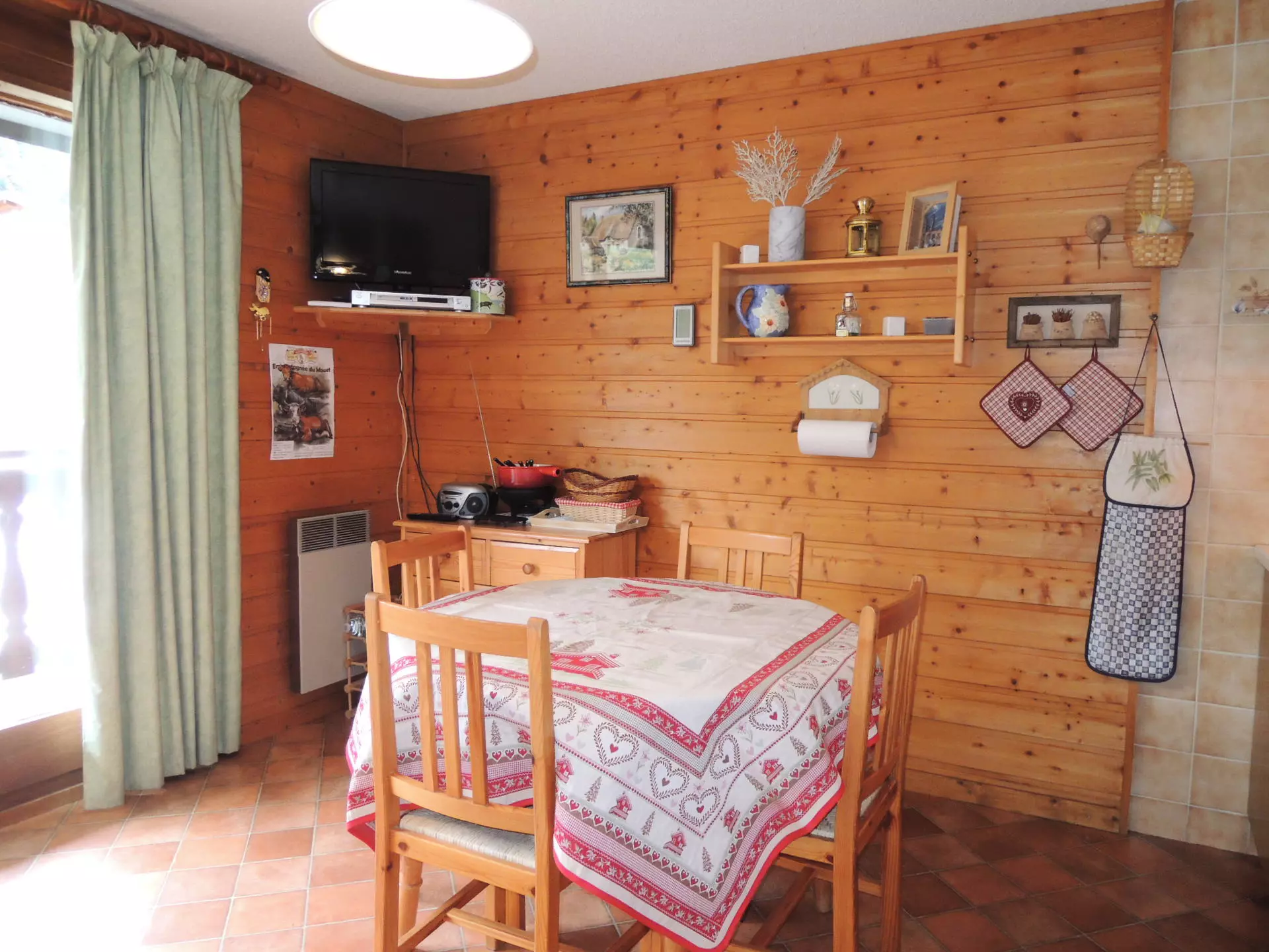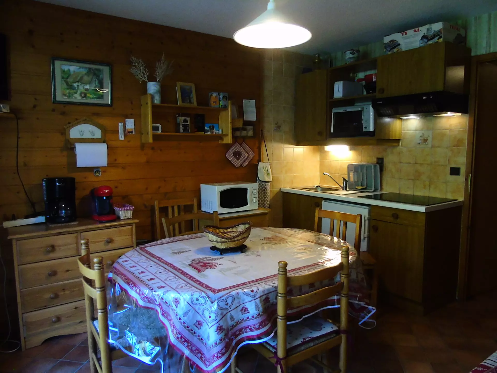 The kitchen is equipped with a hob, a mini-oven, a kettle, a toaster and a raclette machine.