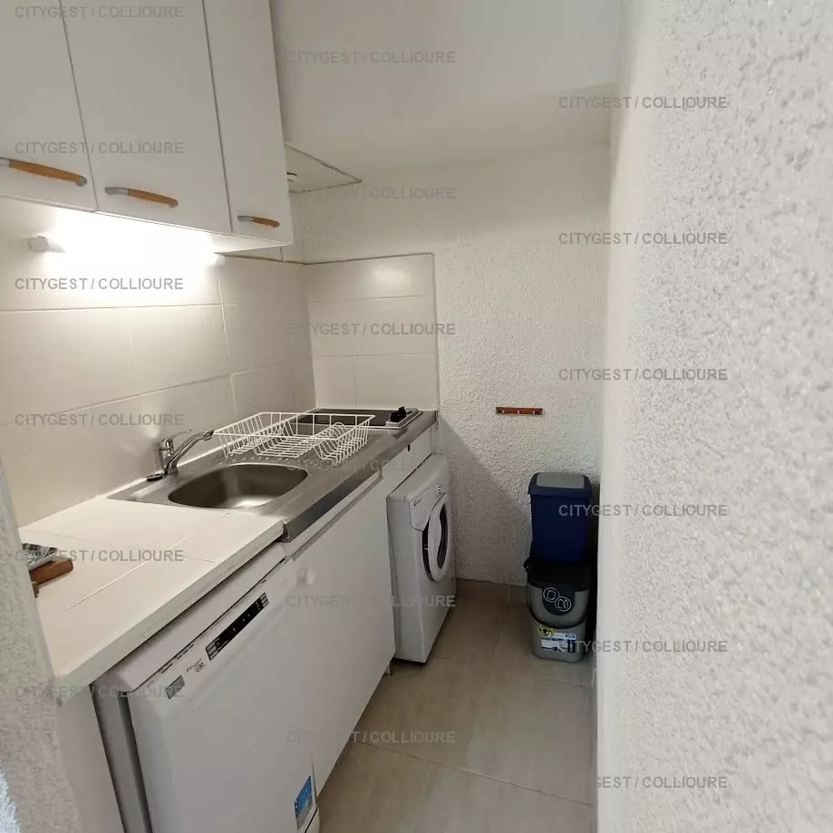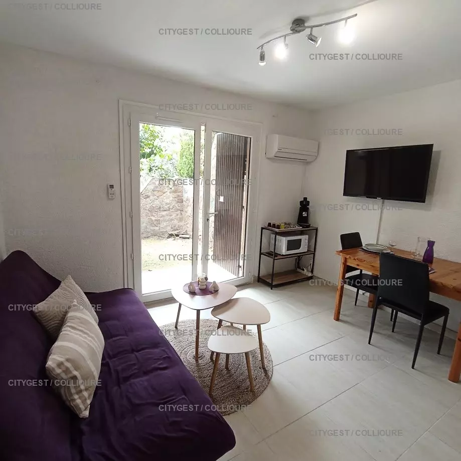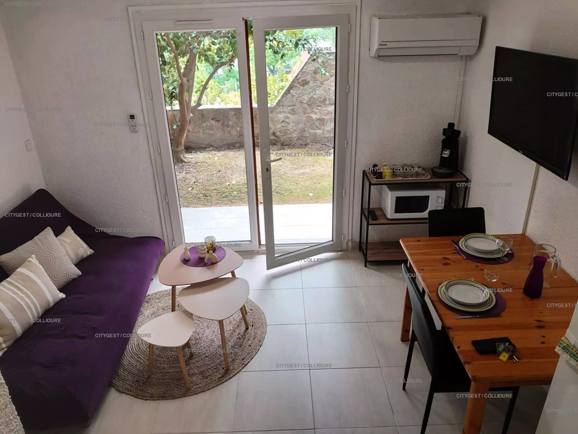 Very nice F2 apartment equipped for 3-4 people located on the ground floor, with private entrance, air-conditioned with superb view of the hills of Collioure in a quiet area including living room with 1 sofa bed, kitchen area with dishwasher, two electric hobs, washing machine, shower room/wc, bedroom (1 bed 140 + 1 extra bed). Terrace / small garden. Your vehicle will find its place on the private parking (narrow) of the residence.