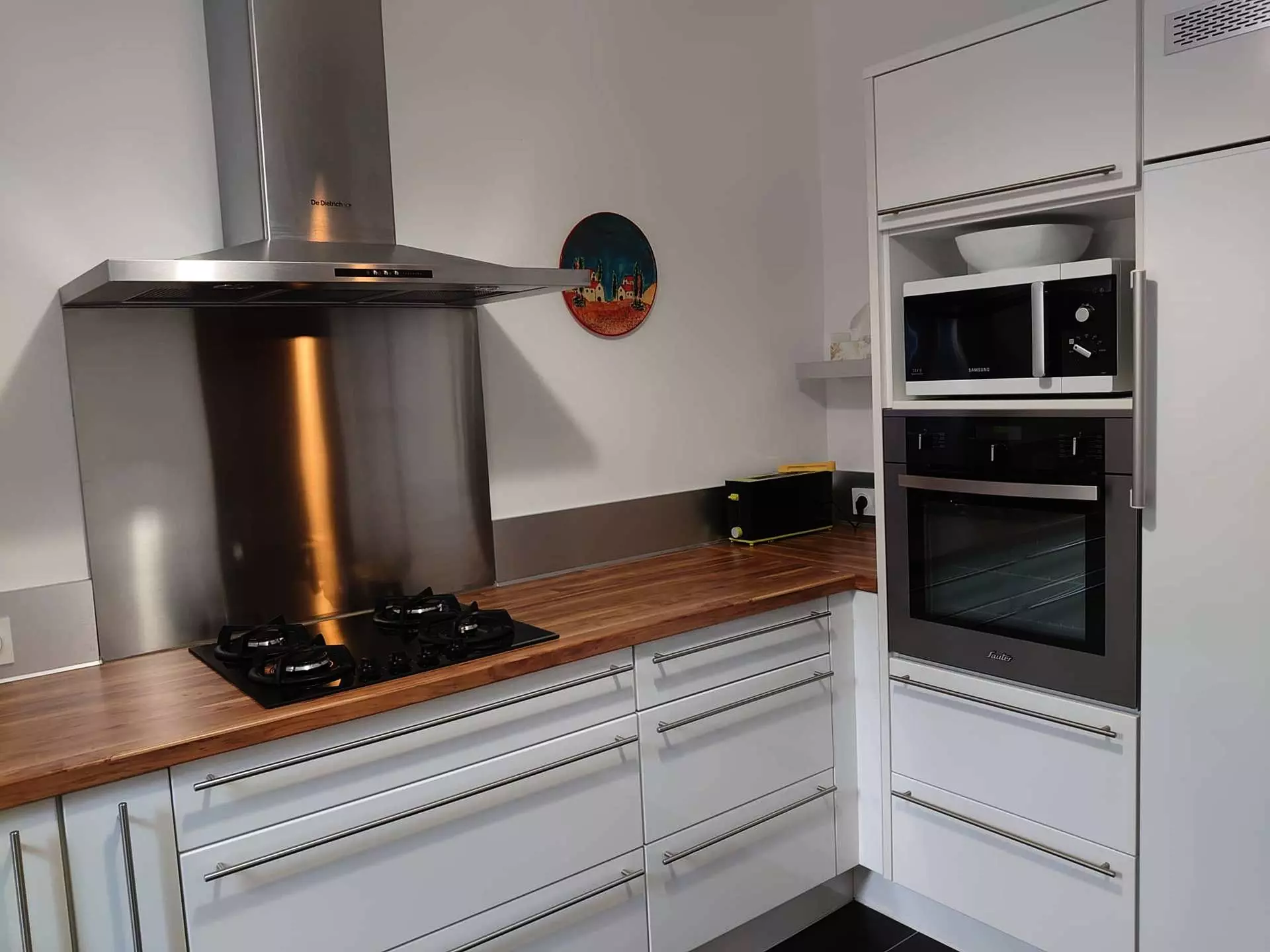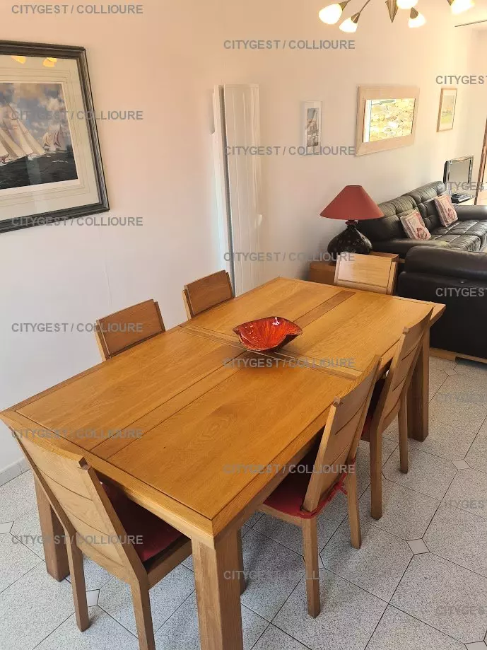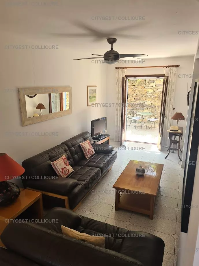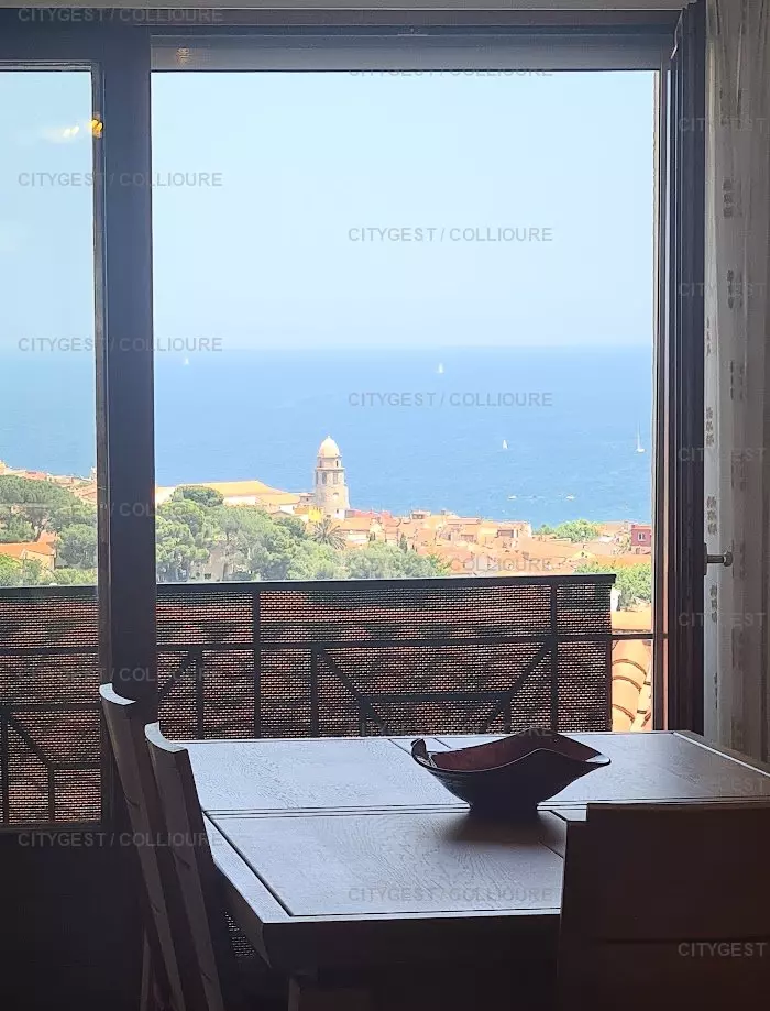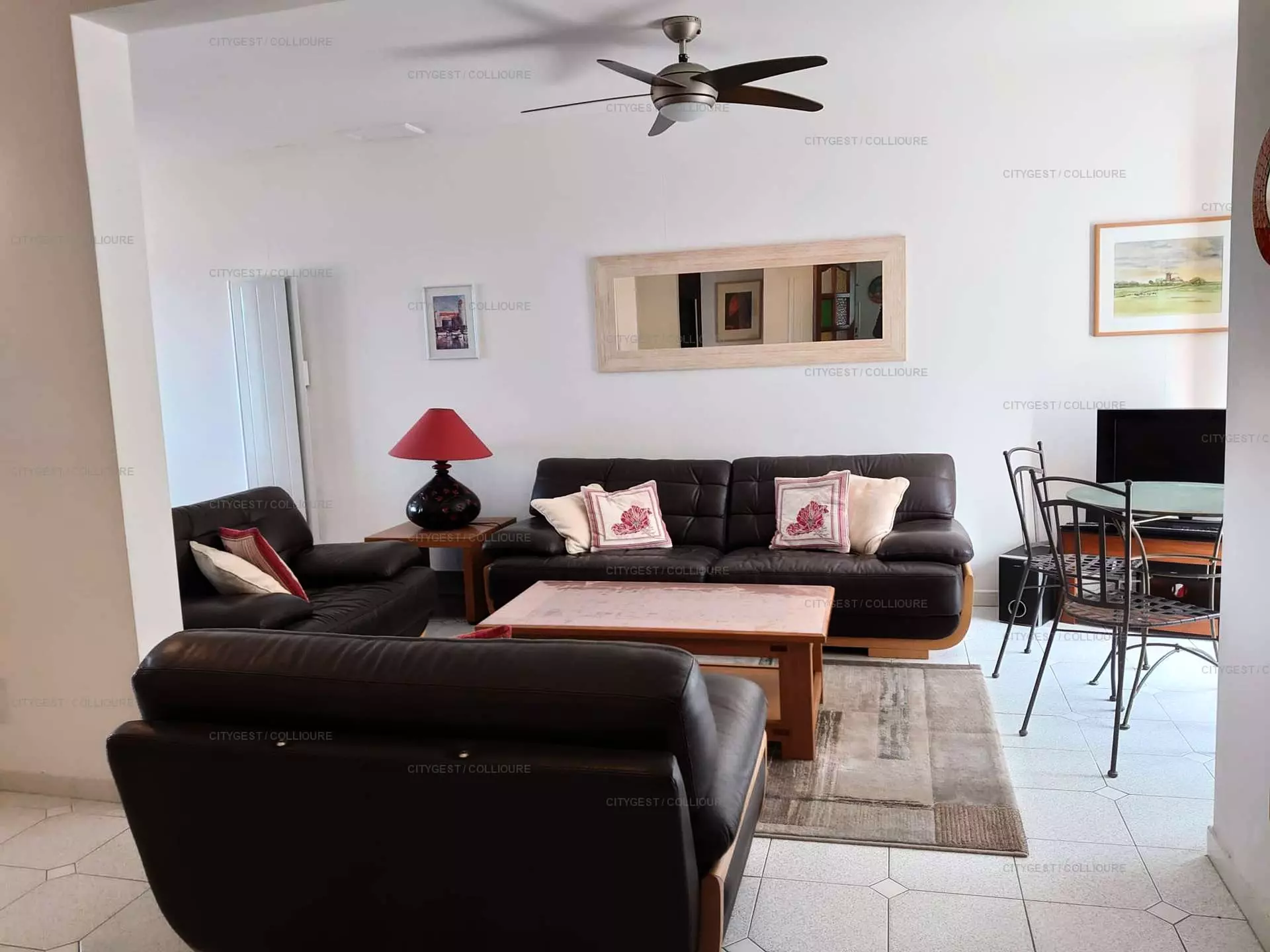 In a recent residence, come and enjoy this pleasant 3-sided T4 villa with space, quality equipment, 3 bedrooms each with its own bathroom and a panoramic view of the bay of Collioure. The accommodation includes, on the ground floor, a garage with parking space, freezer and washing machine, 1 bedroom with 2 single beds and a shower room.