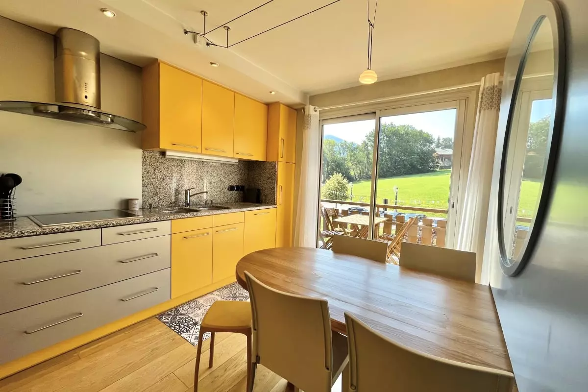Combloux is located in the Pays du Mont-Blanc, nestled against the Aravis mountain range, facing the Mont-Blanc and Fiz mountain ranges, with a 360° panorama.