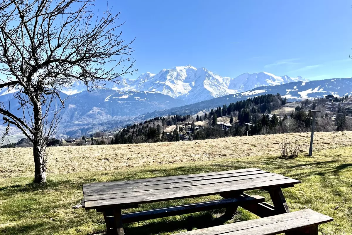 - view of Mont Blanc and the entire chain on the east side, view of the Aravis chain on the west side balcony;