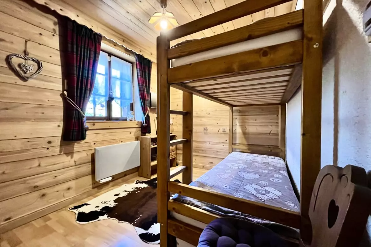 - two bedrooms with a double bed and a bunk bed;