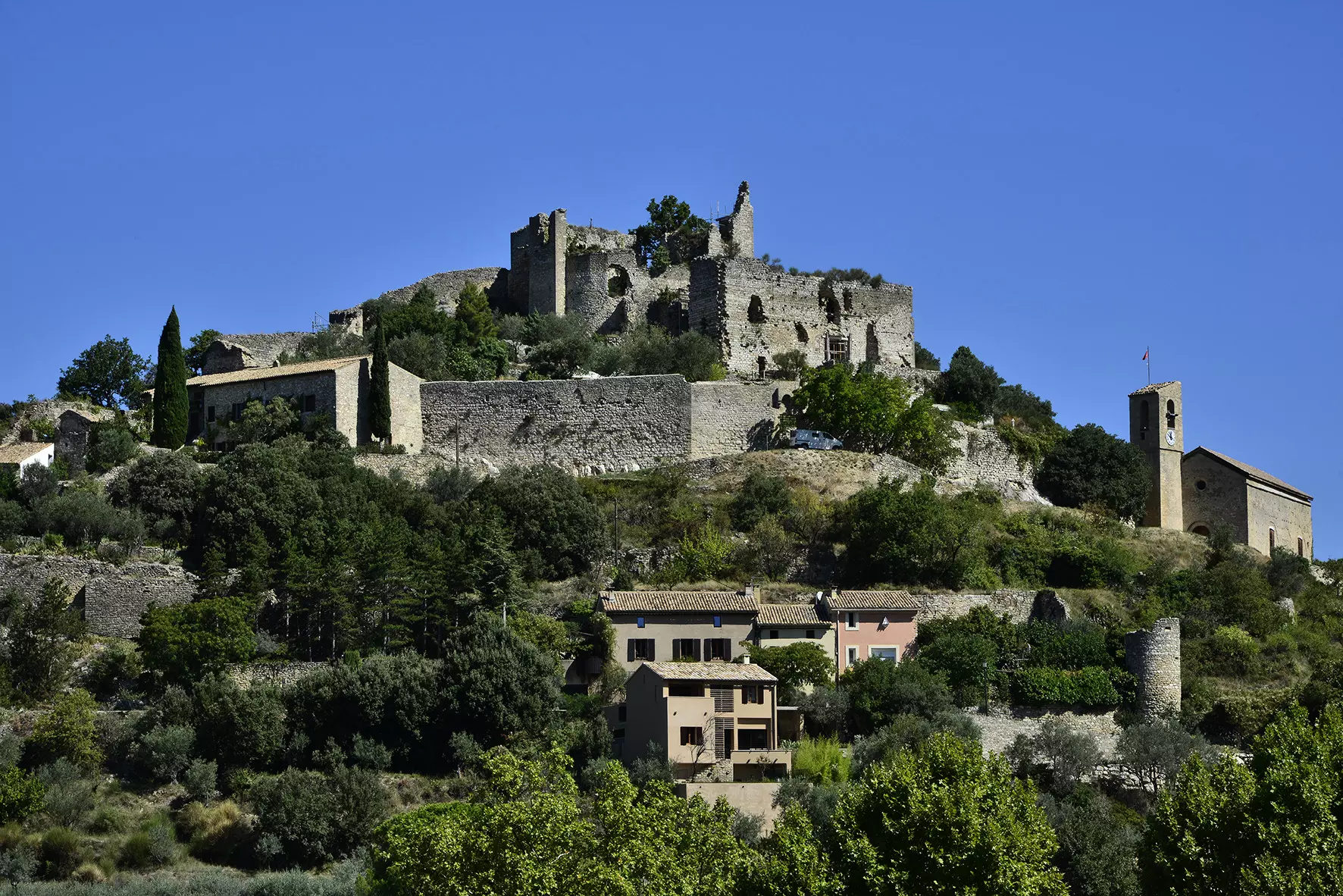 90 m2 accommodation located under the castle on the heights of Entrechaux, 250 meters from the shops