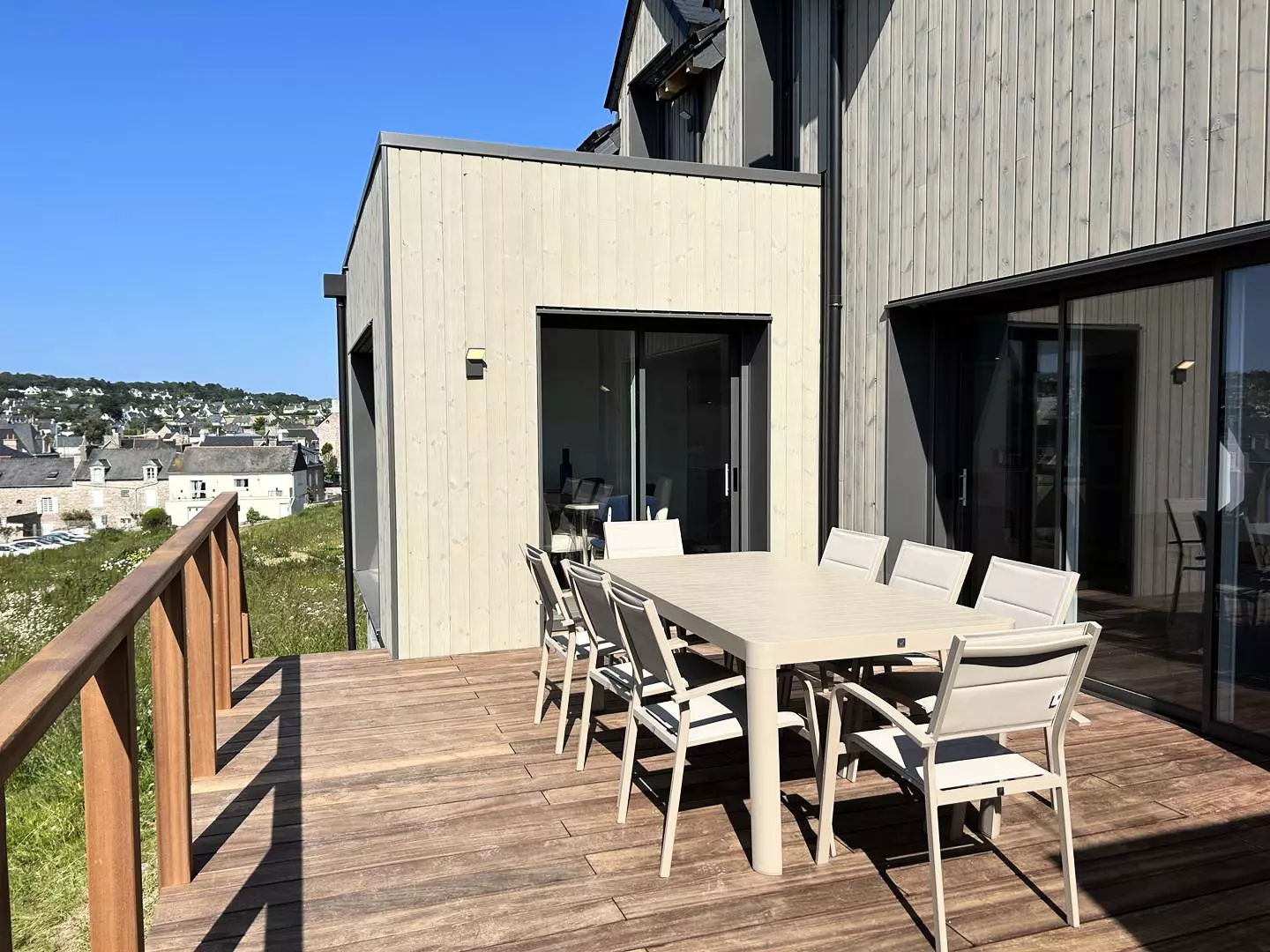 Come stay in this new house, ideally located near the shops and the beach in the center of Erquy. Its location on the heights of Erquy, at the entrance to the town, will bring you peace and quiet, along with a magnificent view of the sea and the port of Erquy.