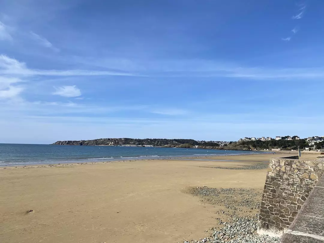 In ERQUY, on the edge of and with direct access to the beautiful CAROUAL beach (2km of fine sand), in the Caroual residence, 2km from the shopping center, a tastefully renovated apartment, on the 4th floor (with elevator to the 3rd floor), magnificent view of the sea.