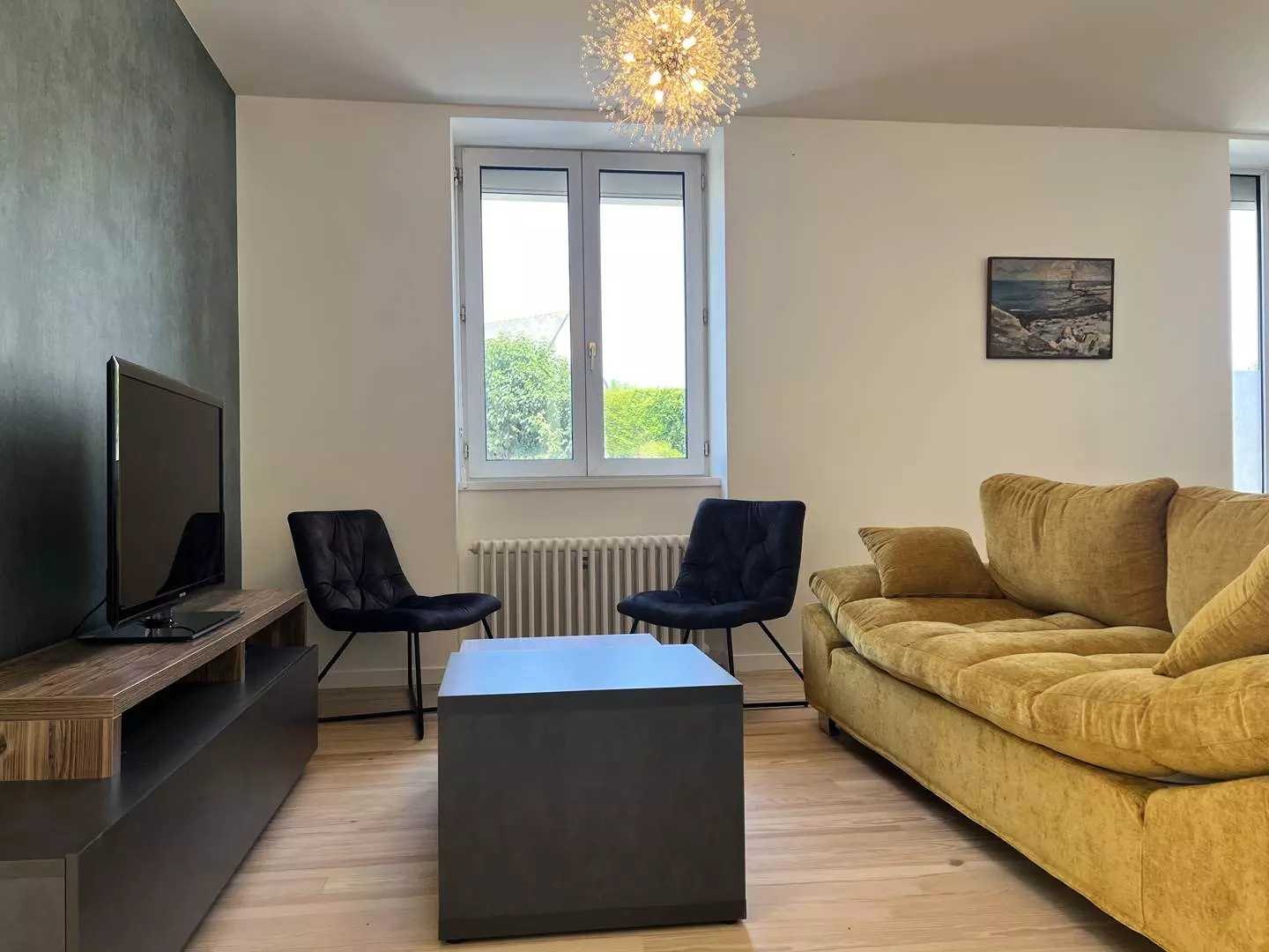 - A living room with sofa, TV and WIFI access;