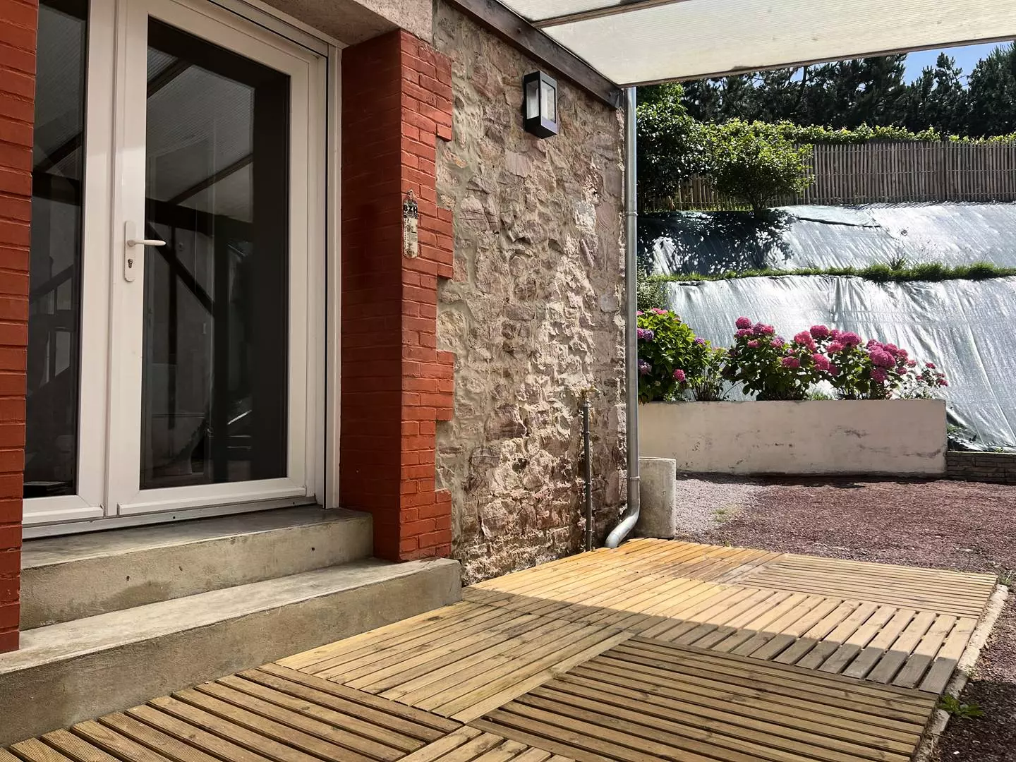 Garden and outdoor terrace and private parking in the courtyard of the house.