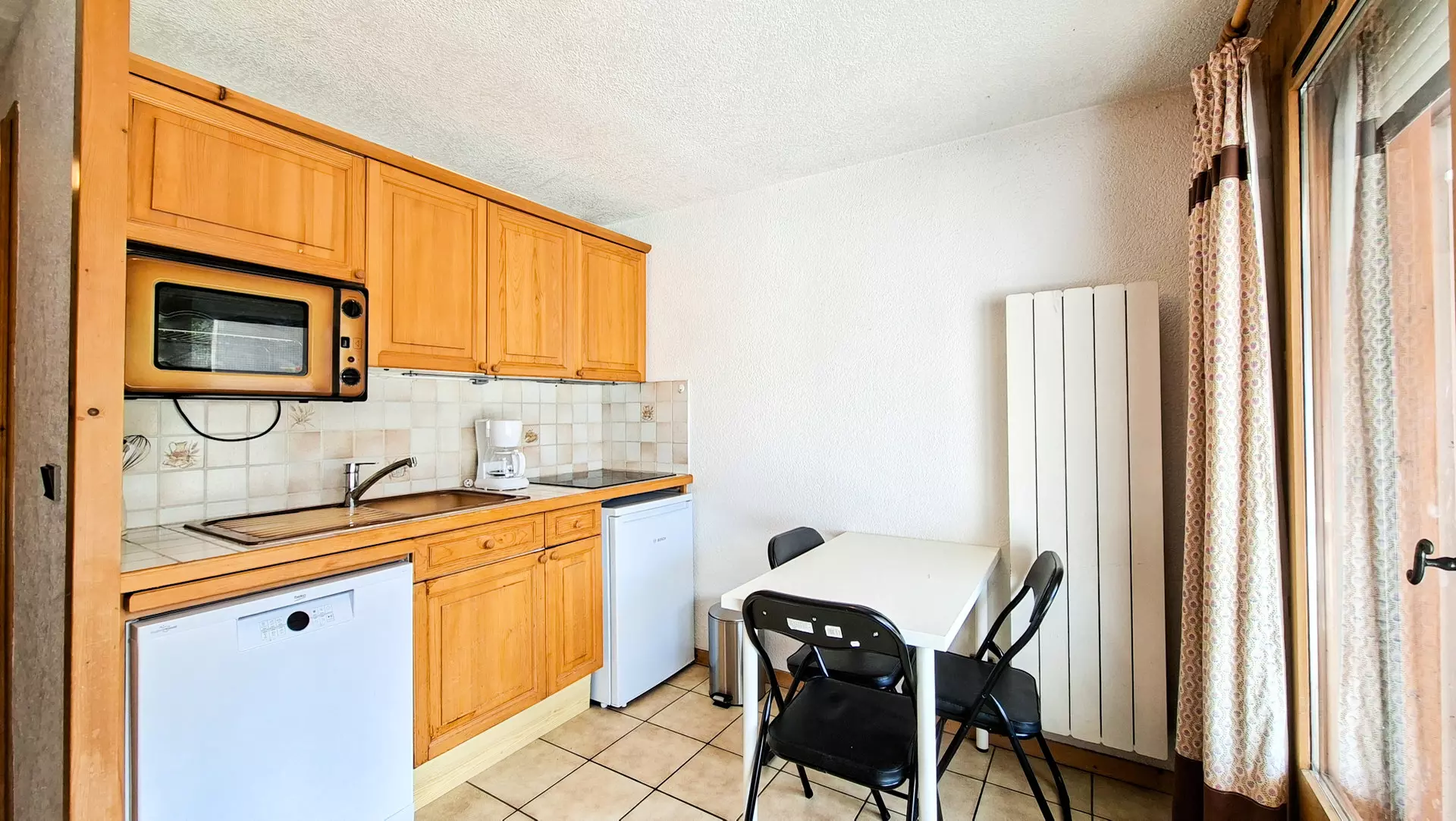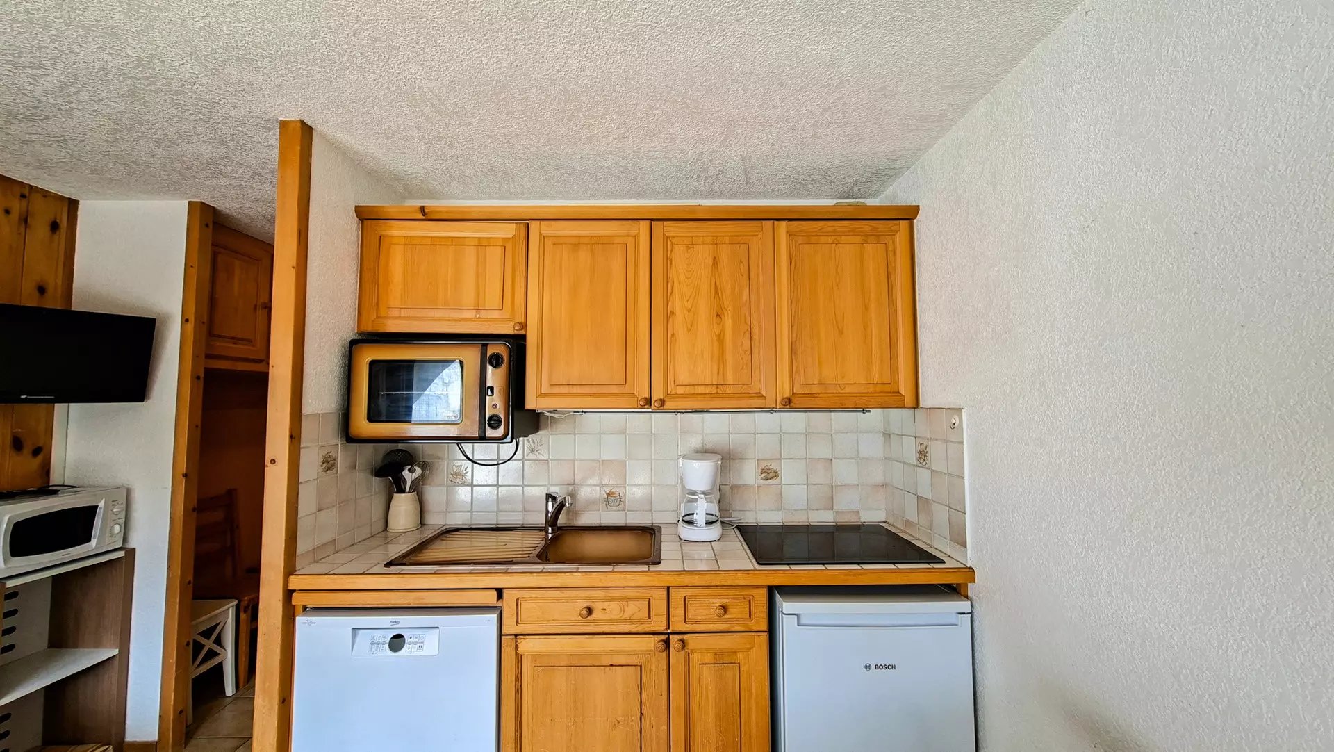 - Kitchenette with electric hob, oven, microwave and dishwasher