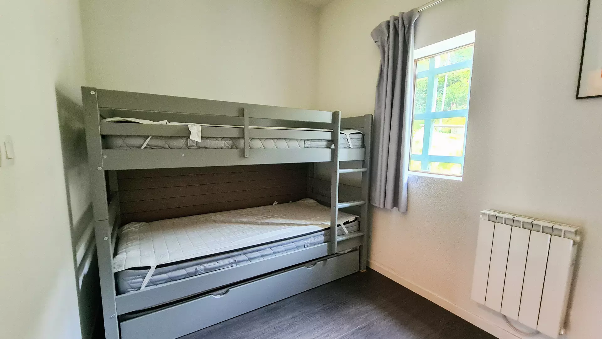 - Bedroom 2 North: 1 set of bunk beds and 1 pull-out bed (on the garden level)