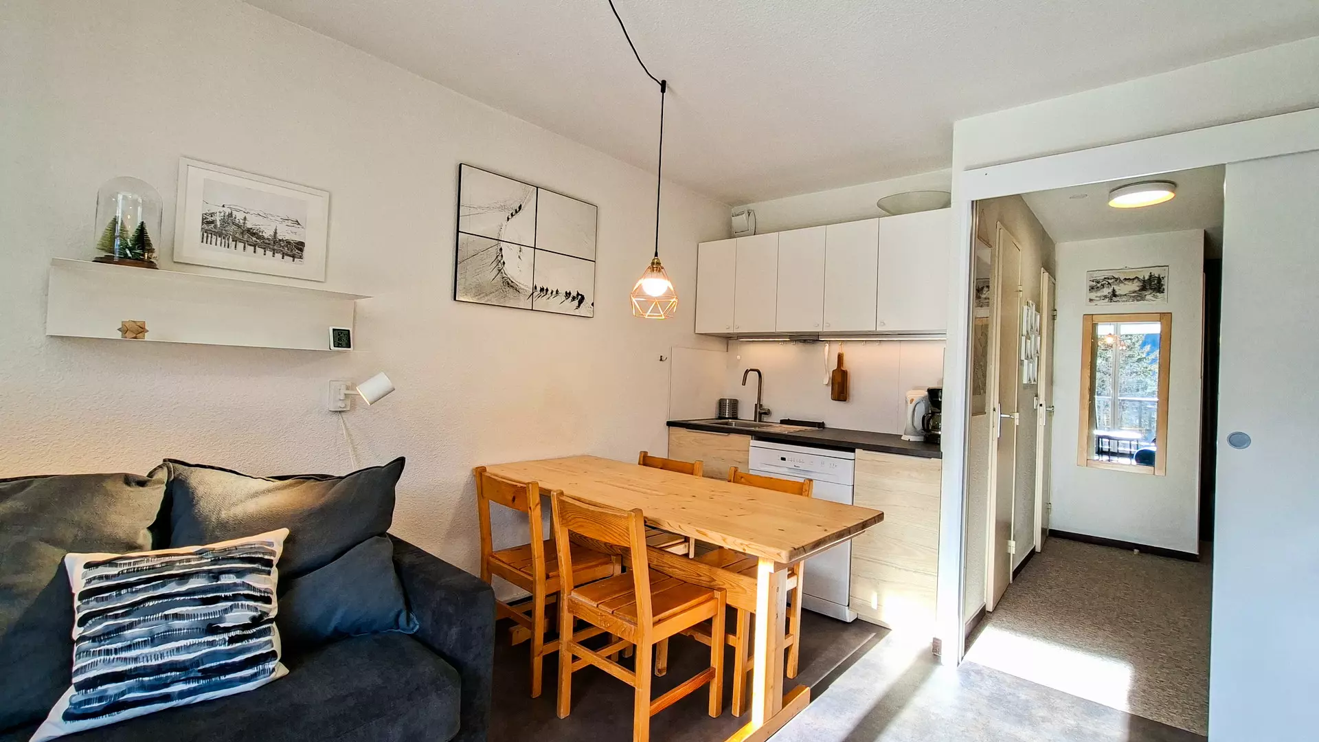 2-room apartment + 40m2 comfort cabin on the 1st floor, south-facing balcony, panoramic view of the ski area