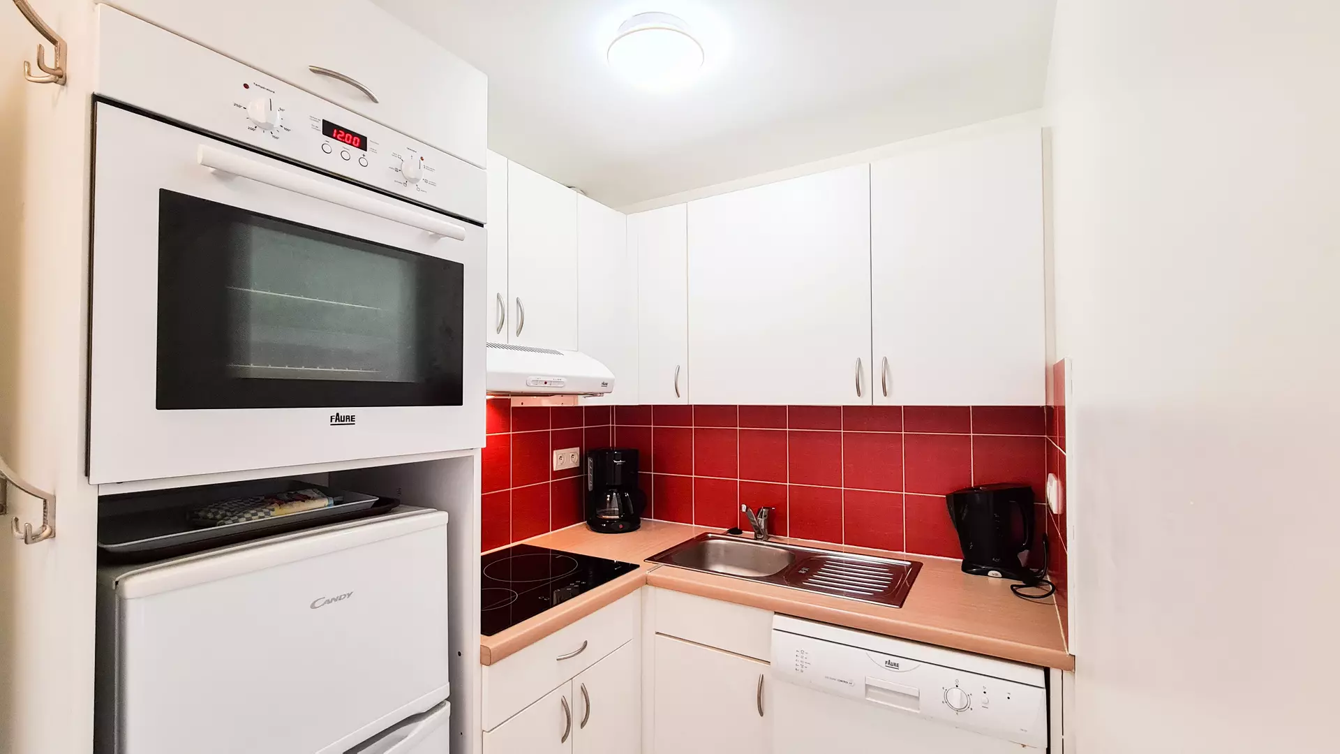 - Kitchen area with induction hob, multifunction oven, refrigerator and dishwasher