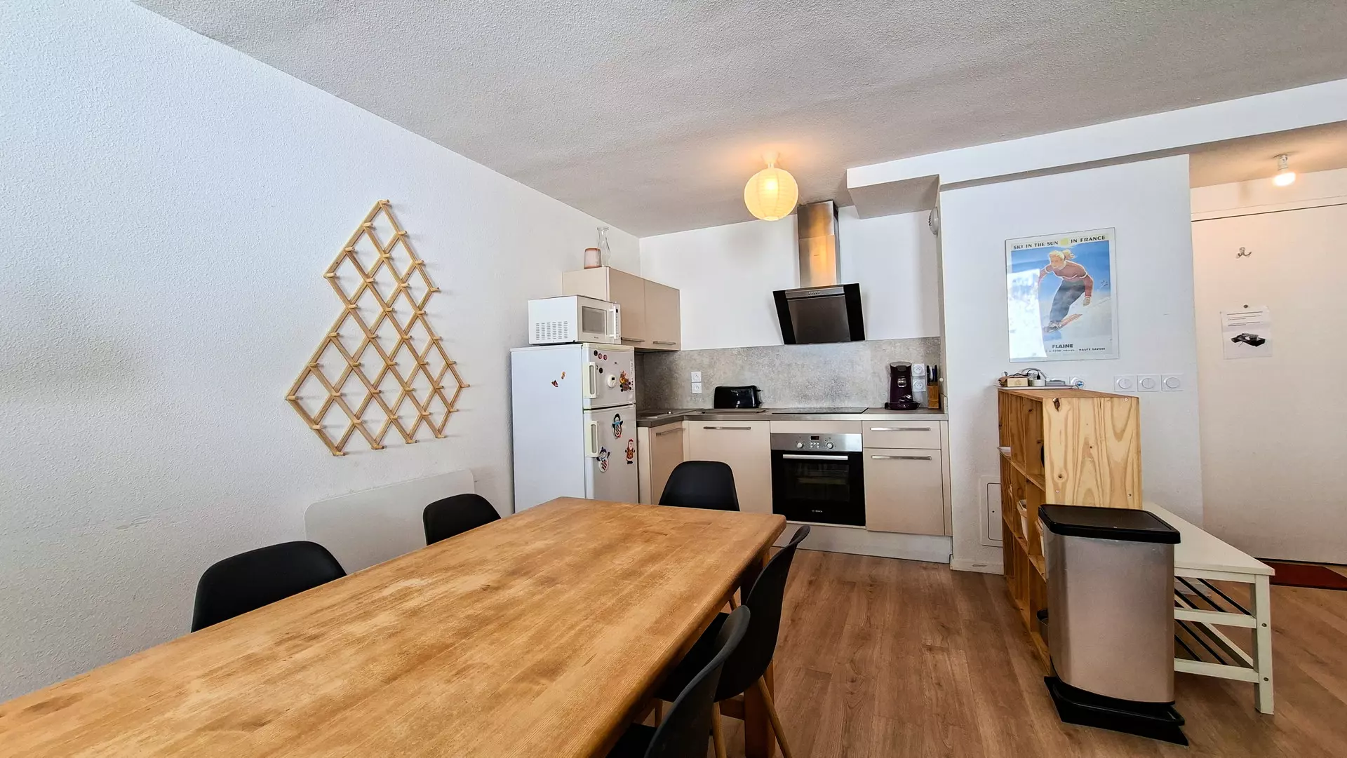- kitchen in the living room with ceramic hob, oven and dishwasher