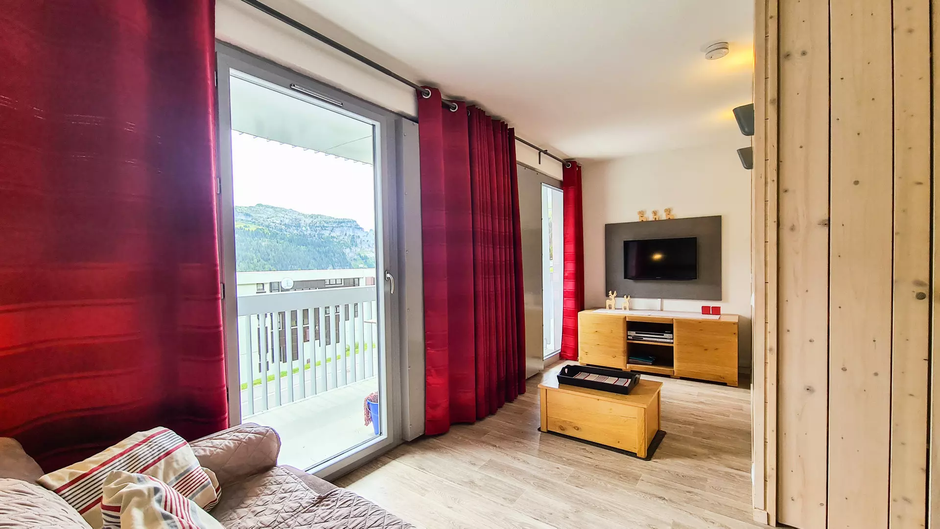 - Living room with double sofa bed, flat screen television, DVD player