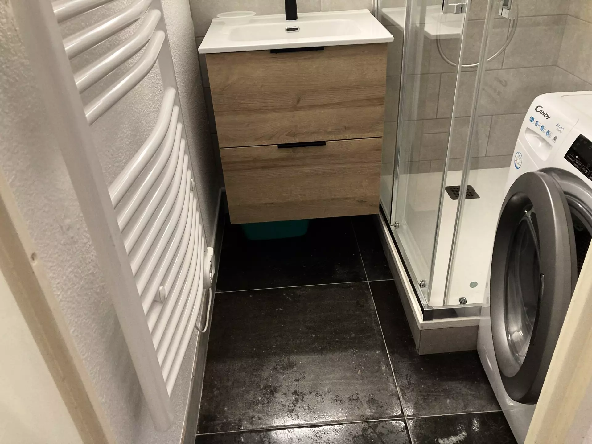 - Kitchen area with ceramic hob, oven, microwave, dishwasher, fridge and freezer