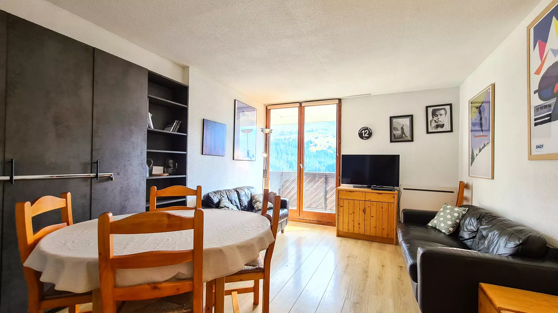 3-room apartment with comfortable cabin, 48 m2 on the 3rd floor, south-facing balcony with synthetic grass, table and chairs