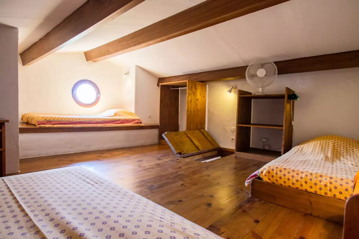 From the landing, you will access the second bedroom, on the mezzanine, which offers three single beds (80 cm), 2 of which can be joined to form 1 double bed (160 cm)