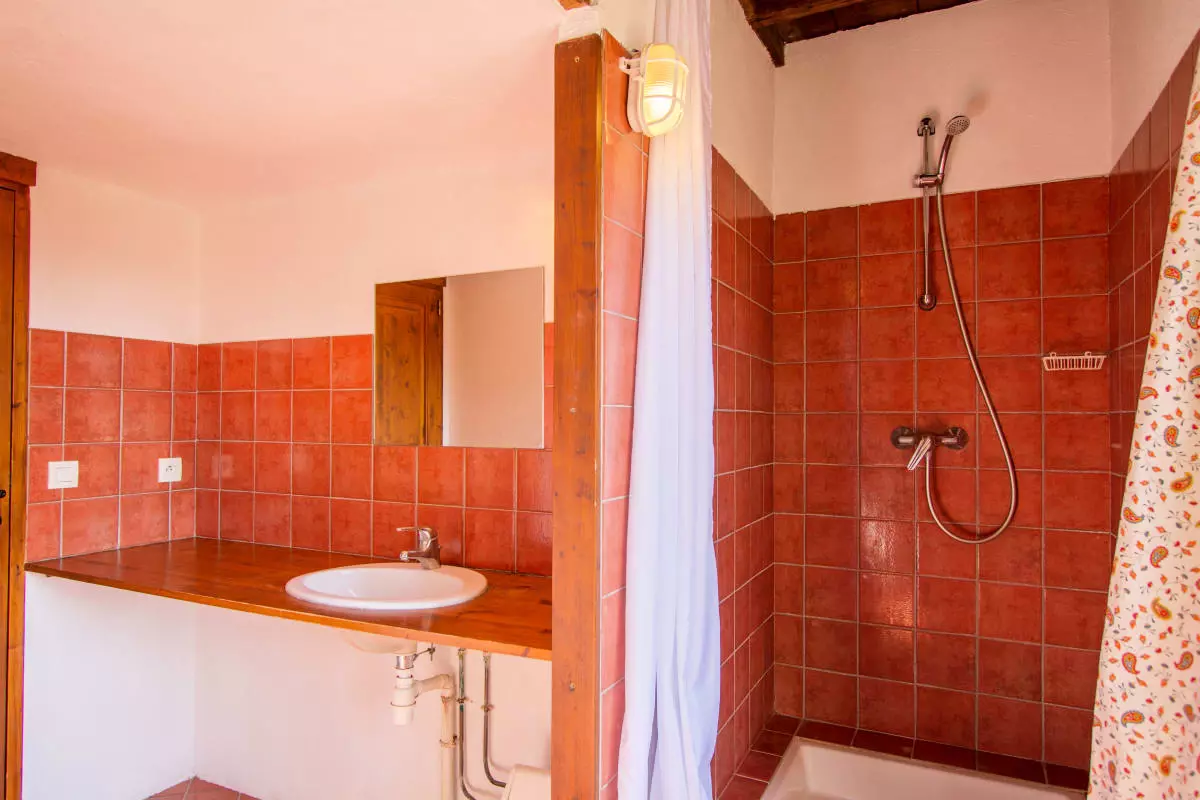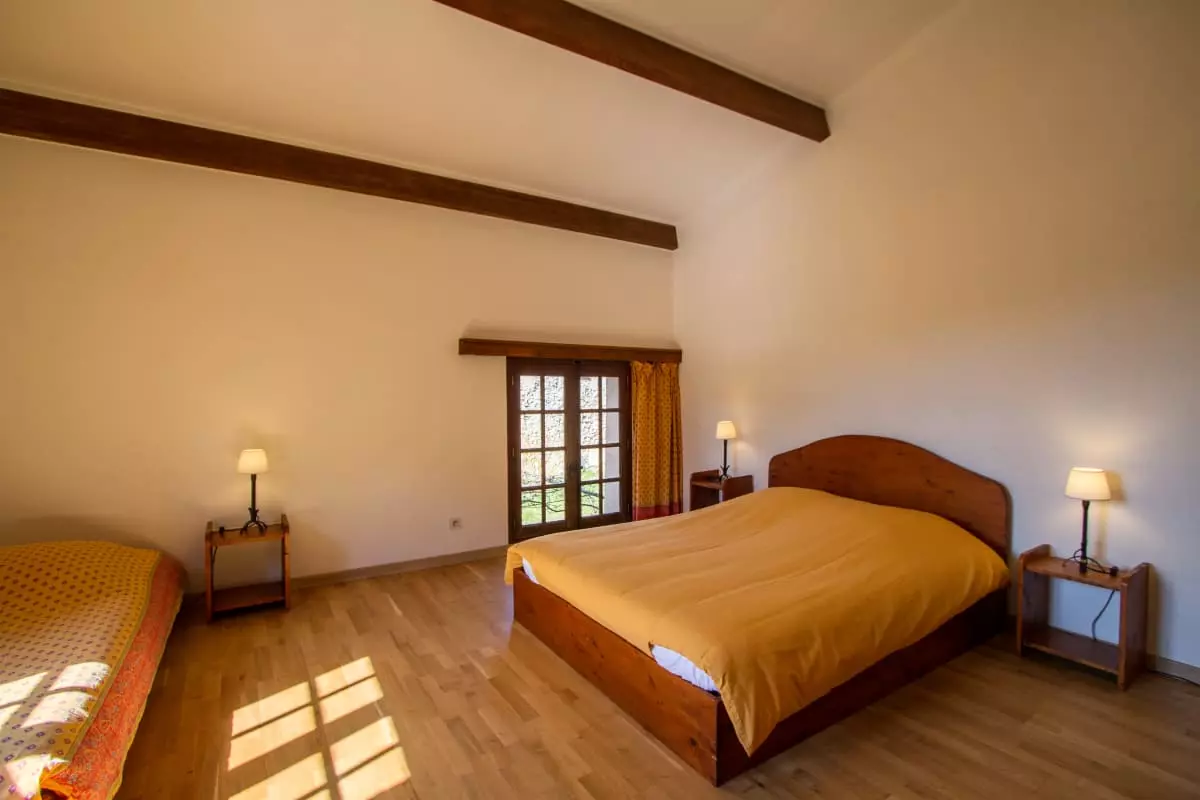 Upstairs, you will find a large bedroom with a large double bed (160 cm) which can be separated into 2 single beds (80 cm); and a single bed (80 cm). This level is completed by a bathroom with shower and a separate toilet.