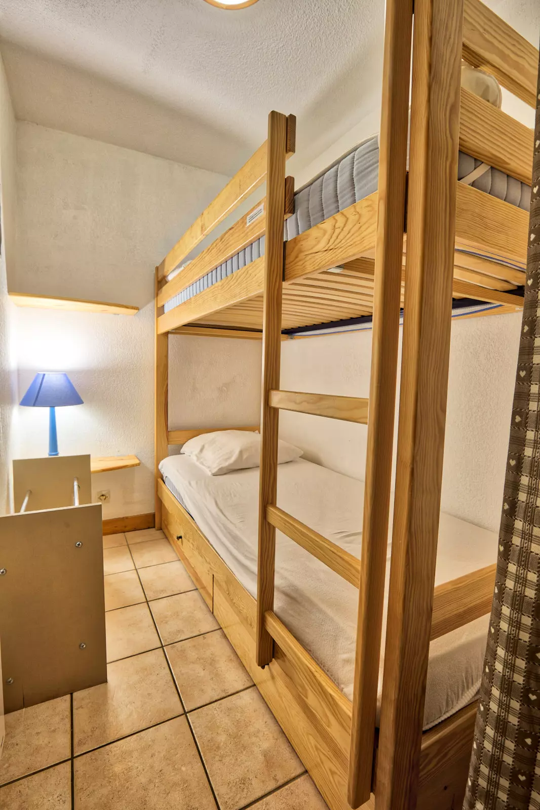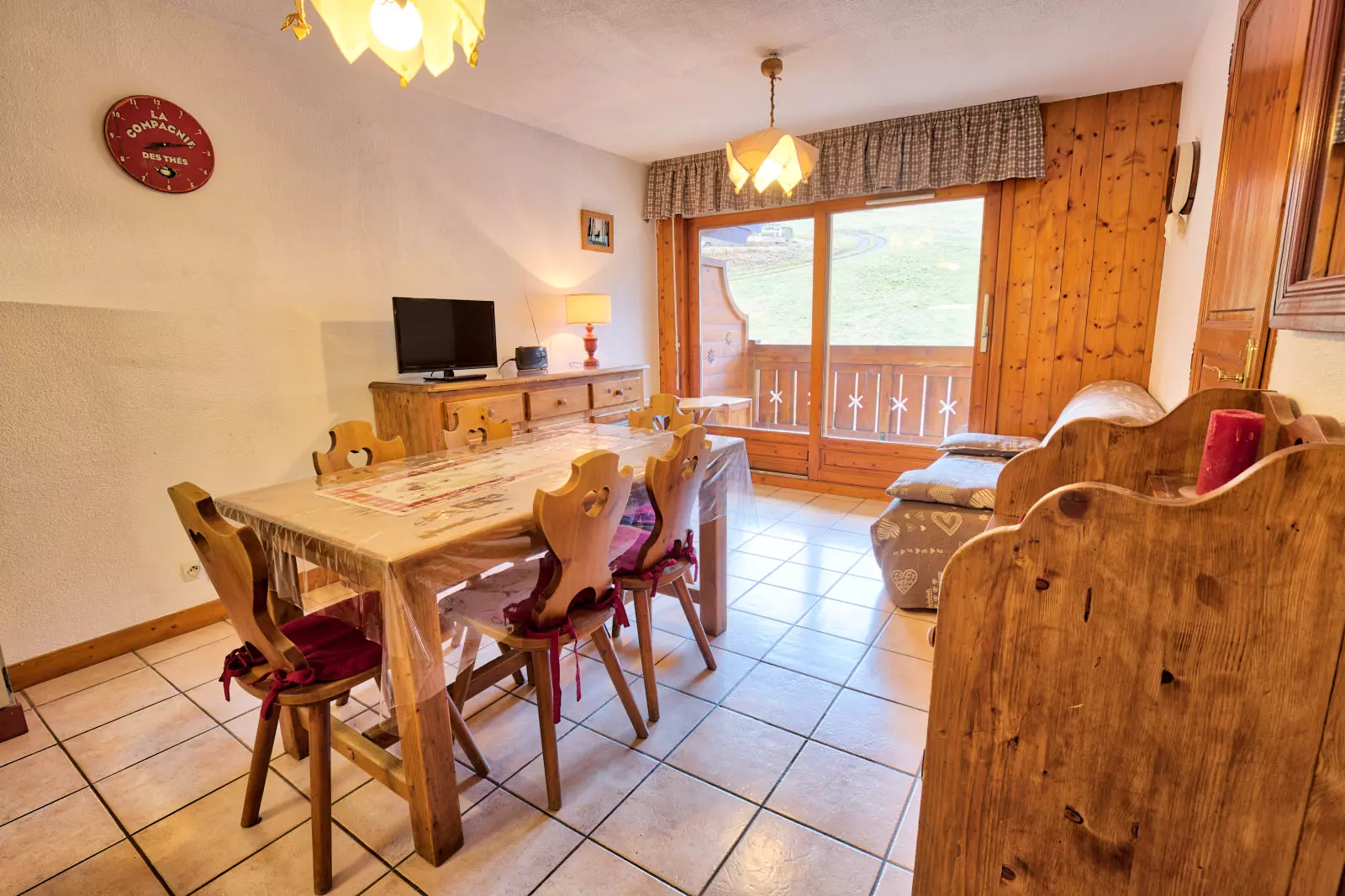 Cozy, -floor apartment of 37m², on the snow front of Espace Diamant with views of the slopes and mountains from its south-facing balcony.