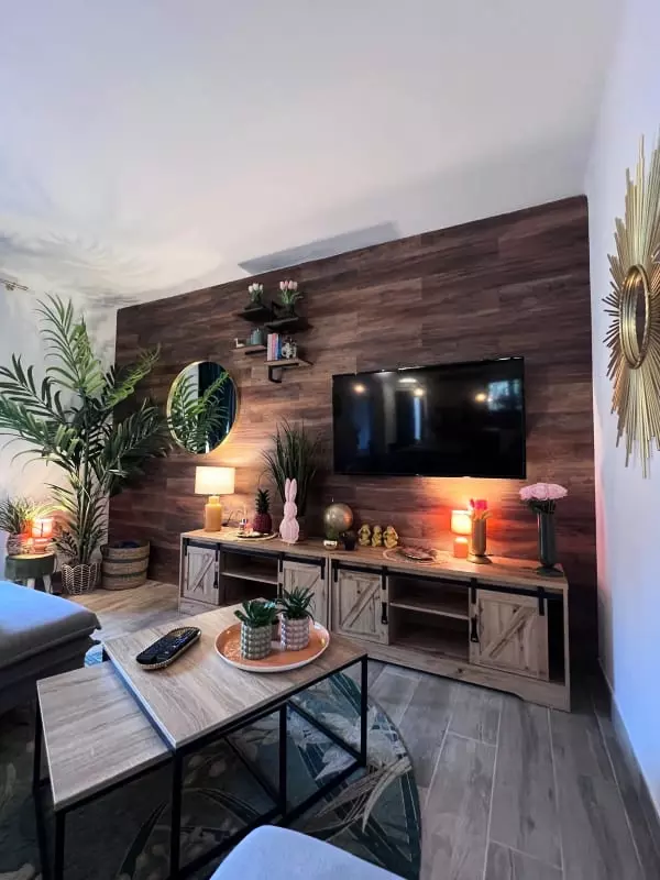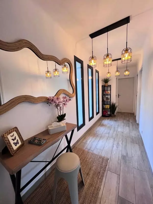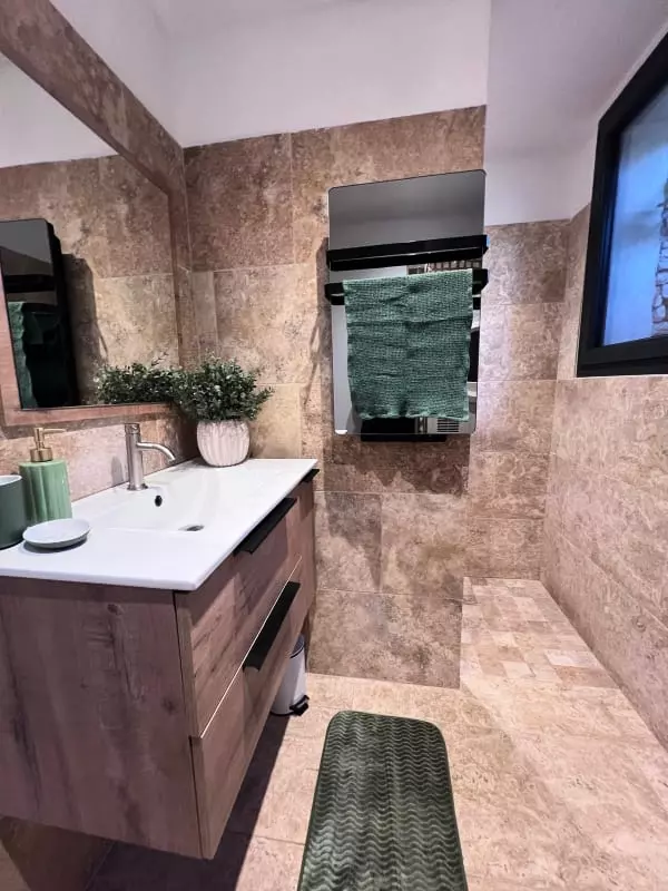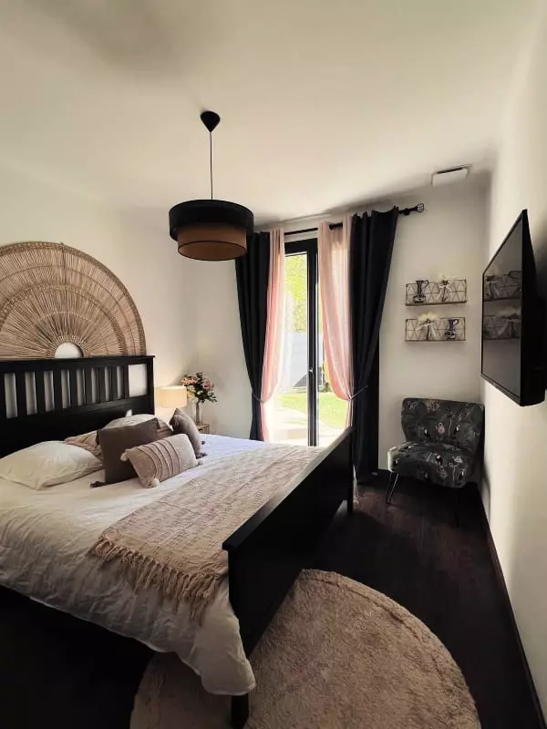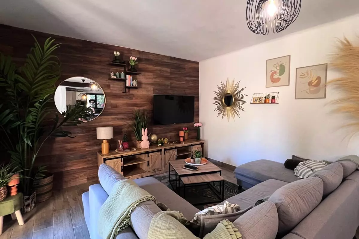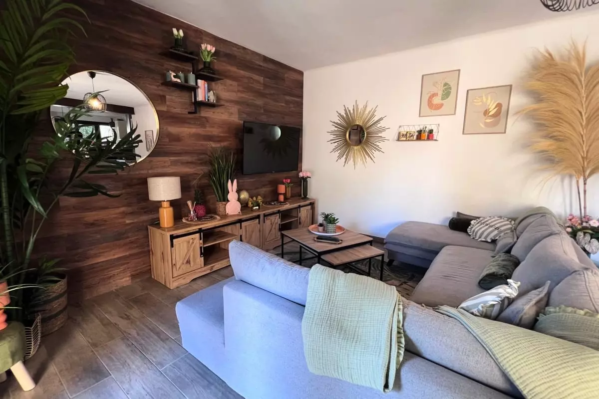 This 100m² house consists of a living room with a television, a dining room, and a fully equipped and furnished open-plan kitchen. It has three comfortable bedrooms, each with a television and air conditioning, as well as a bathroom with a shower.