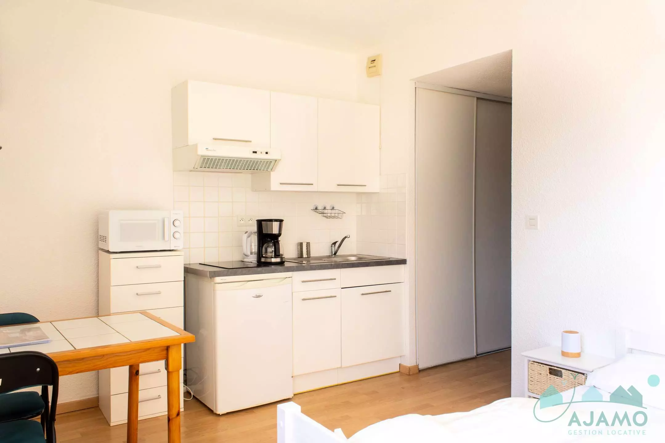 One-room apartment on the 1st floor of a secure residence with: