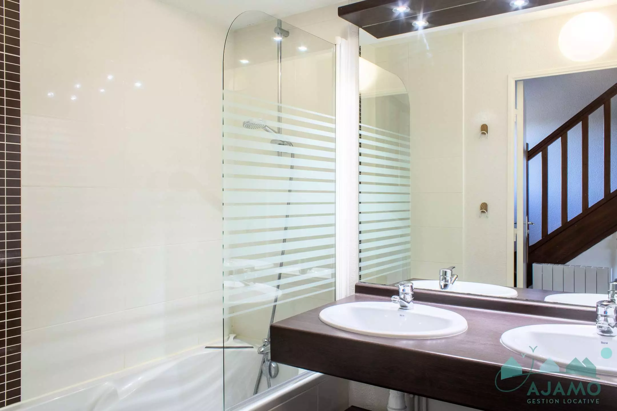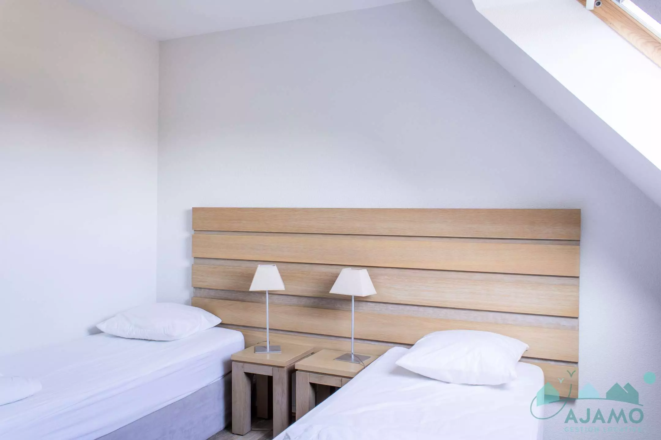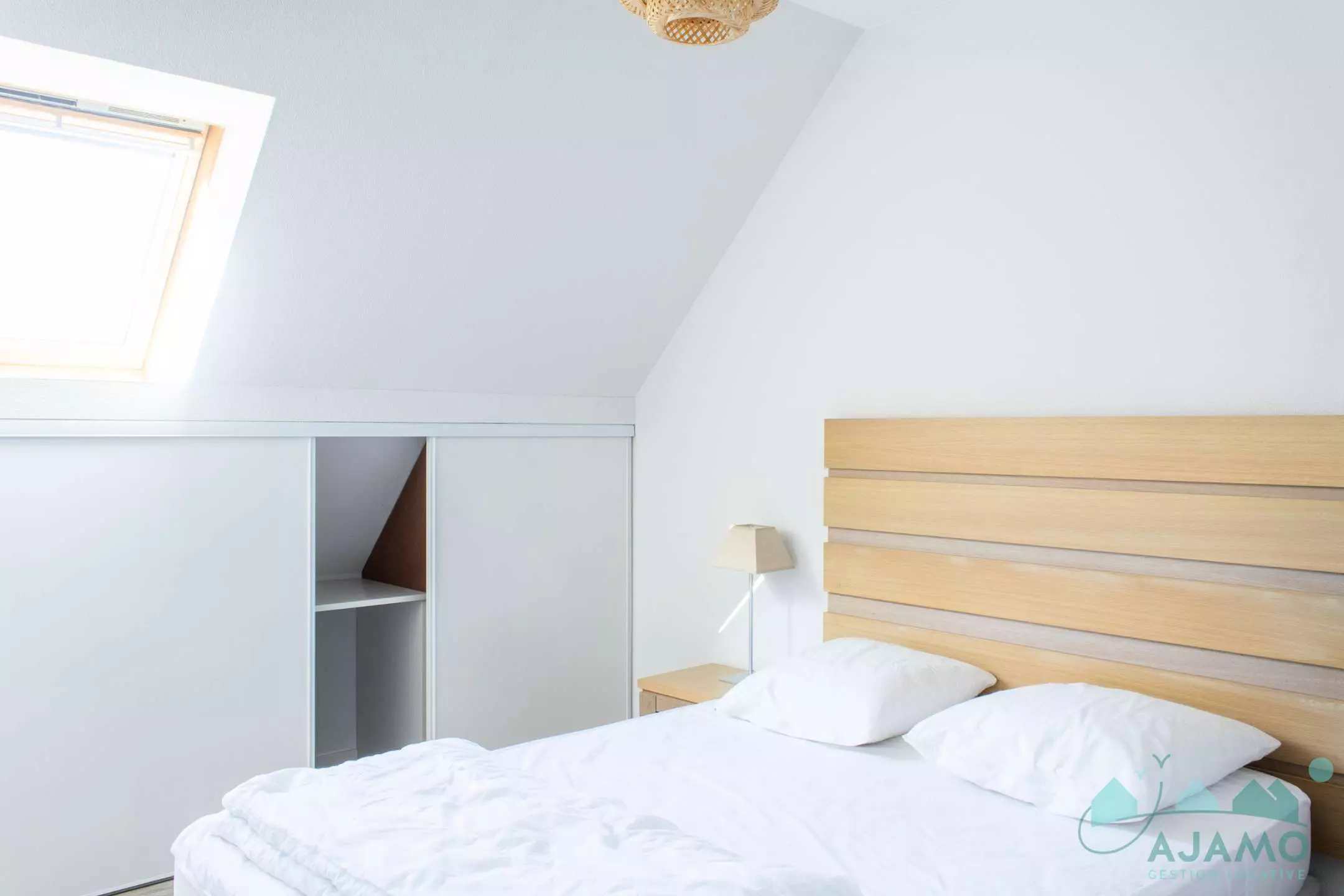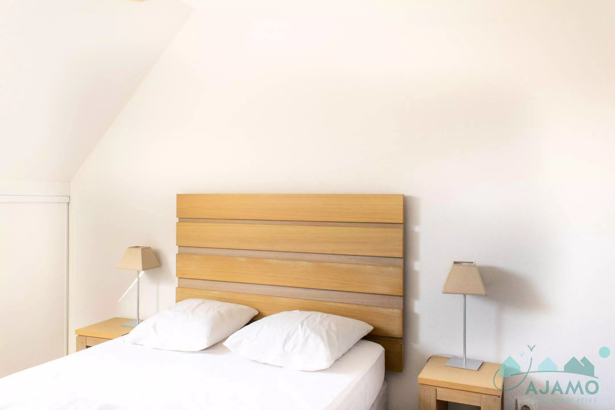 Featuring two closed bedrooms in a double duplex, you will appreciate its direct access to the golf course, the beach of Sables-D'or-Les-Pins as well as the collective indoor swimming pool of the Residence.