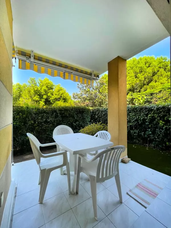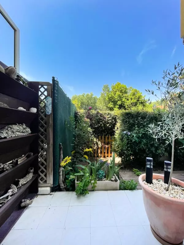 It is composed of a bedroom with two single beds that can be joined together to form a double bed, a sofa bed for two people, a living room, a fitted kitchen, a bathroom with toilet, and a superb terrace with garden where you can enjoy the beautiful sunny days to eat outside, and relax!