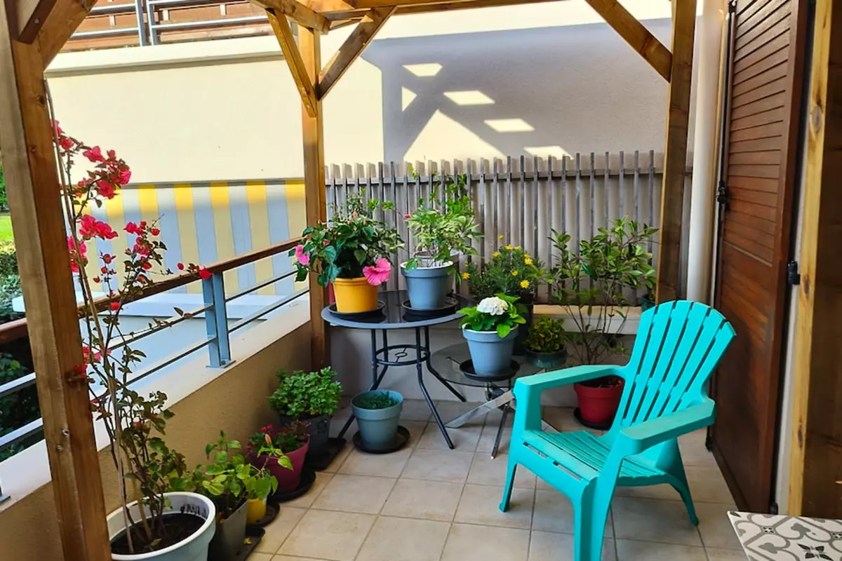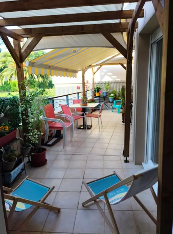 - and a beautiful 20 m² terrace with awning and breakfast table accessible from the living room;