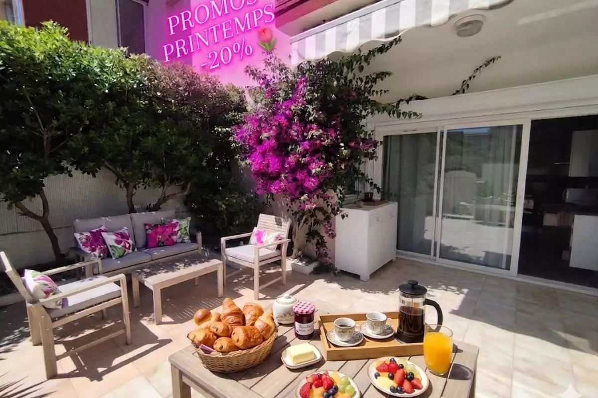 Relax on the patio of this quiet and elegant ground floor apartment. Air-conditioned and refurbished, this apartment is ideally located for...