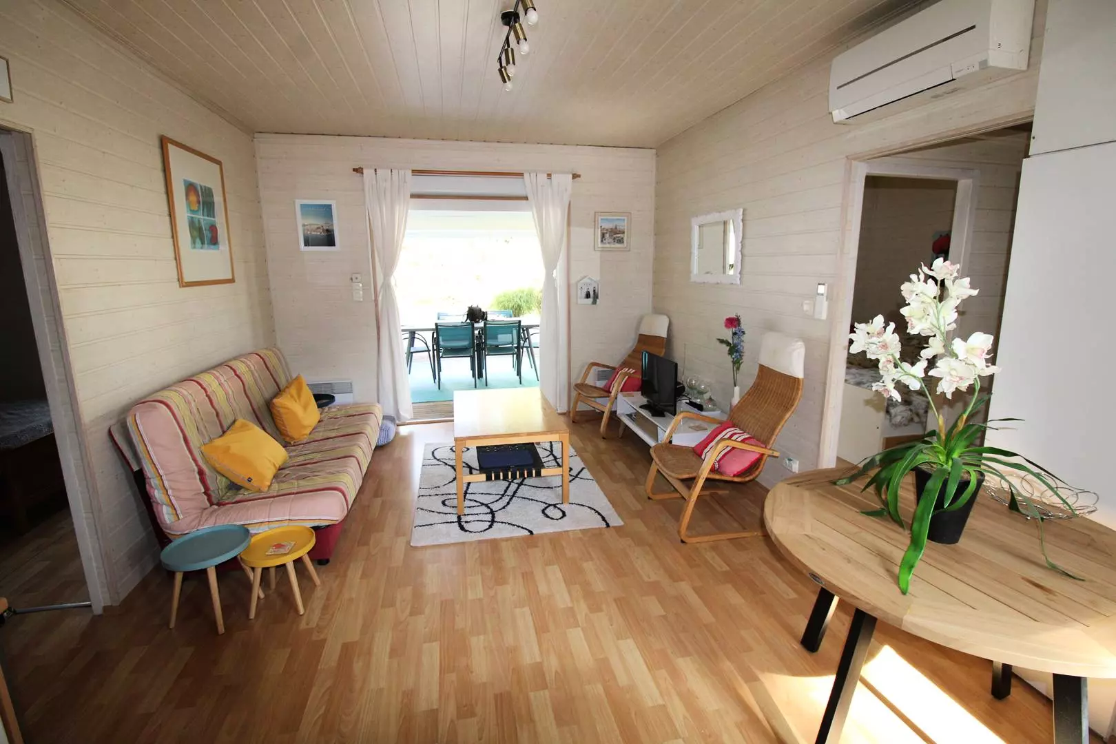 This chalet of approximately 57 m2 opens onto the living room which leads onto its large terrace.