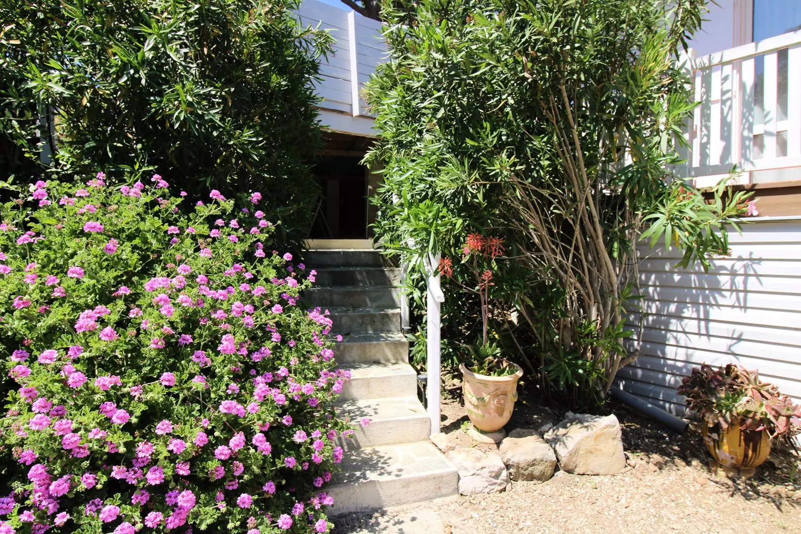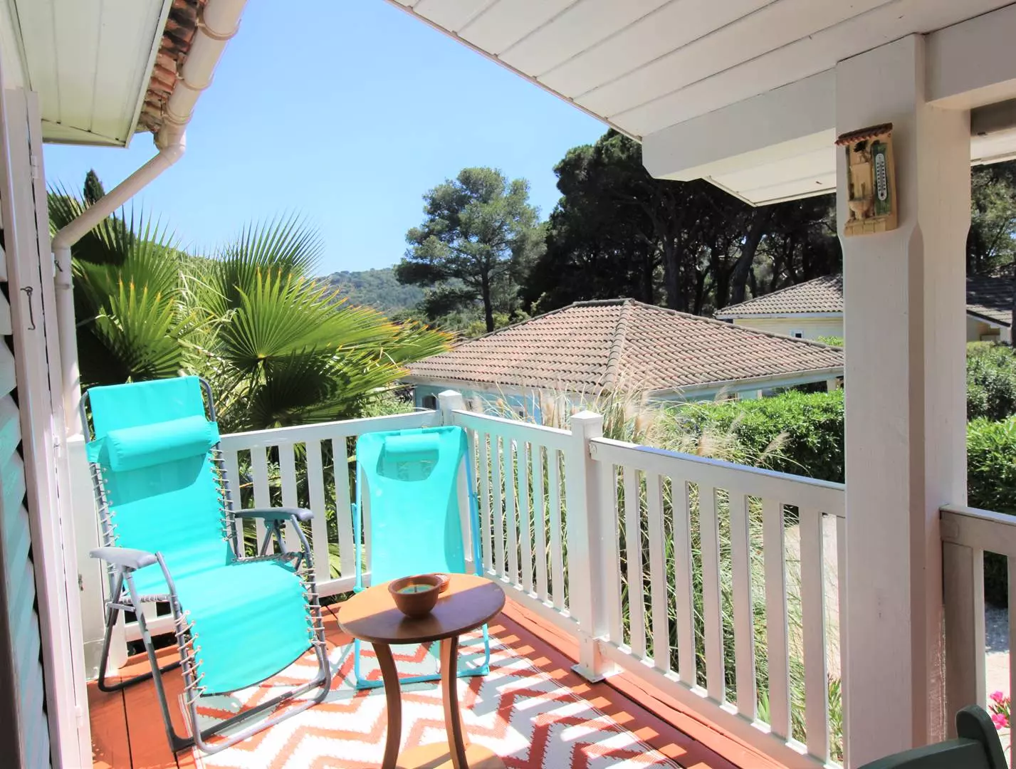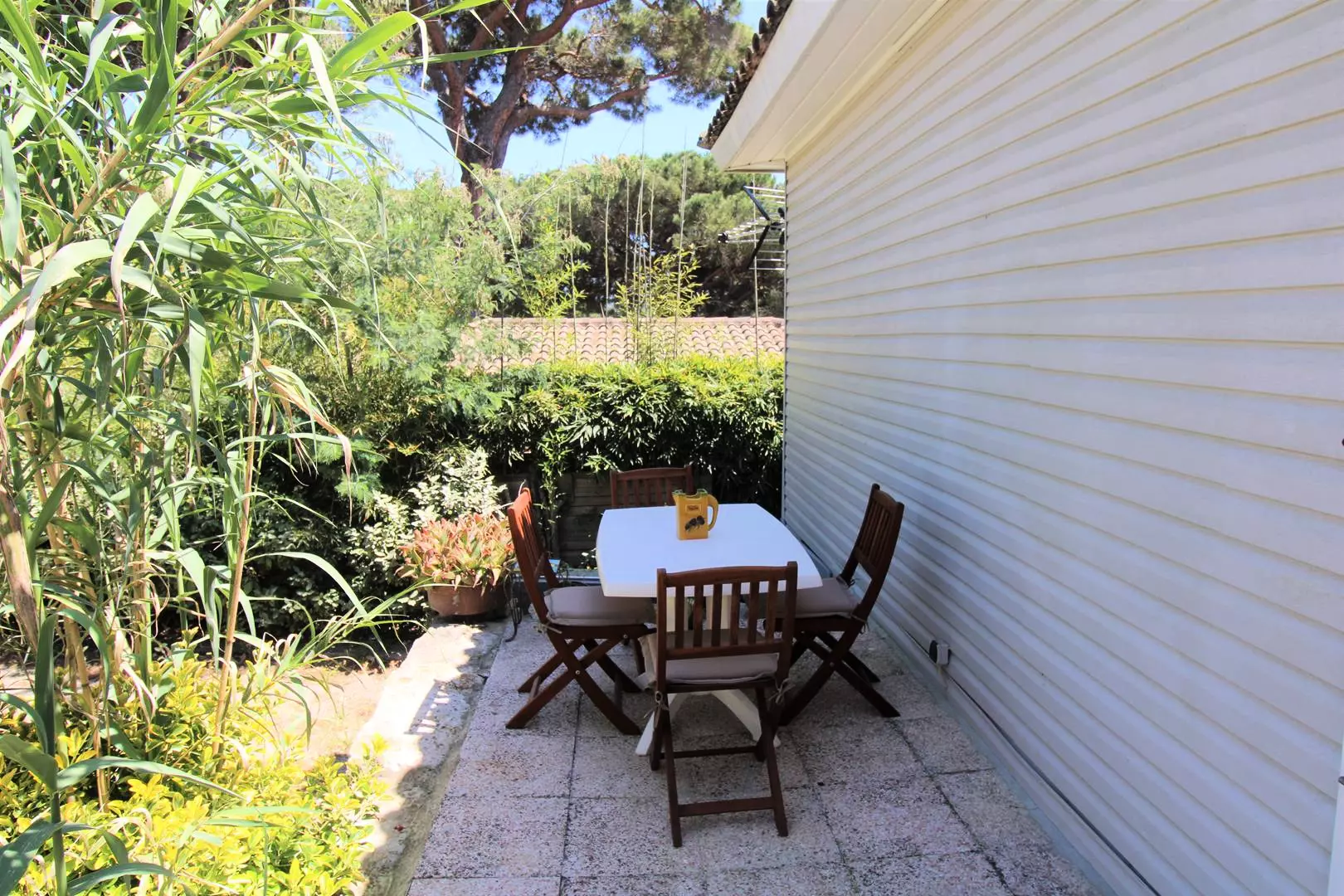Enjoy the peace and quiet of the 2 furnished terraces, the main one facing the living room, the other at the back of the house to enjoy the rays of morning sunshine.