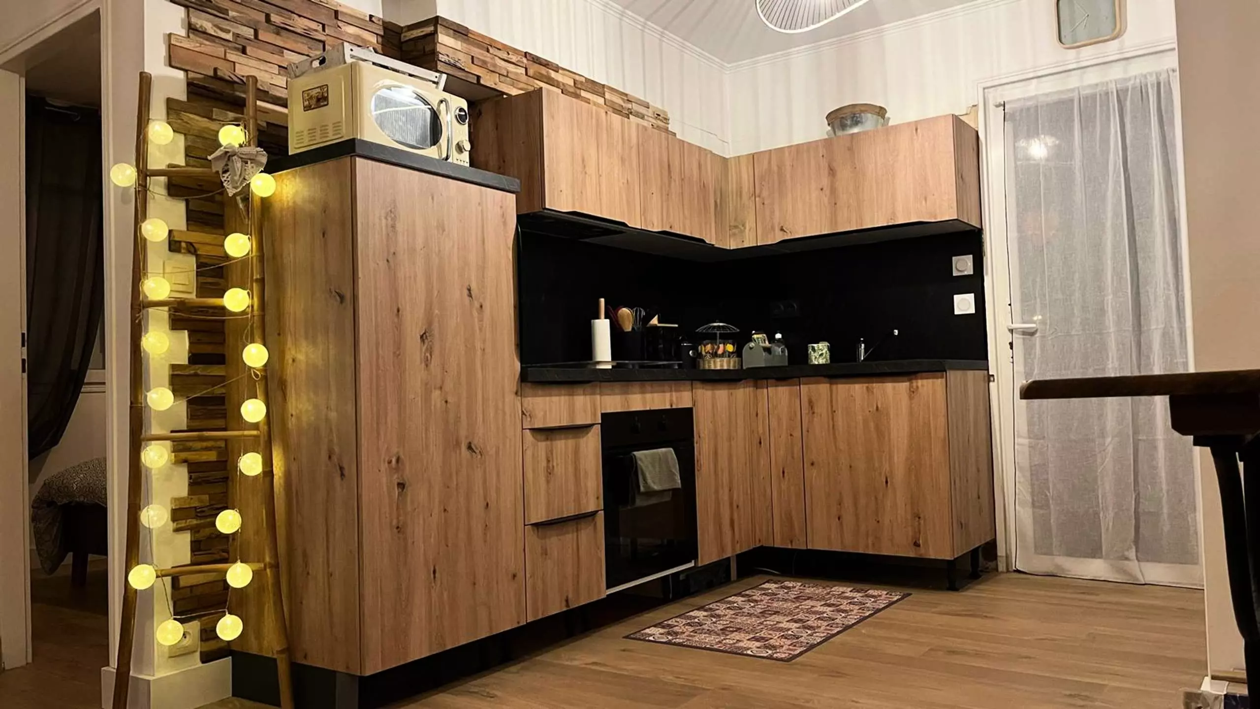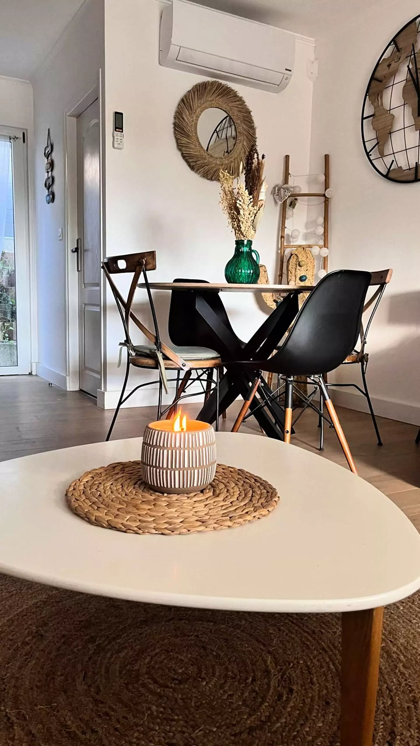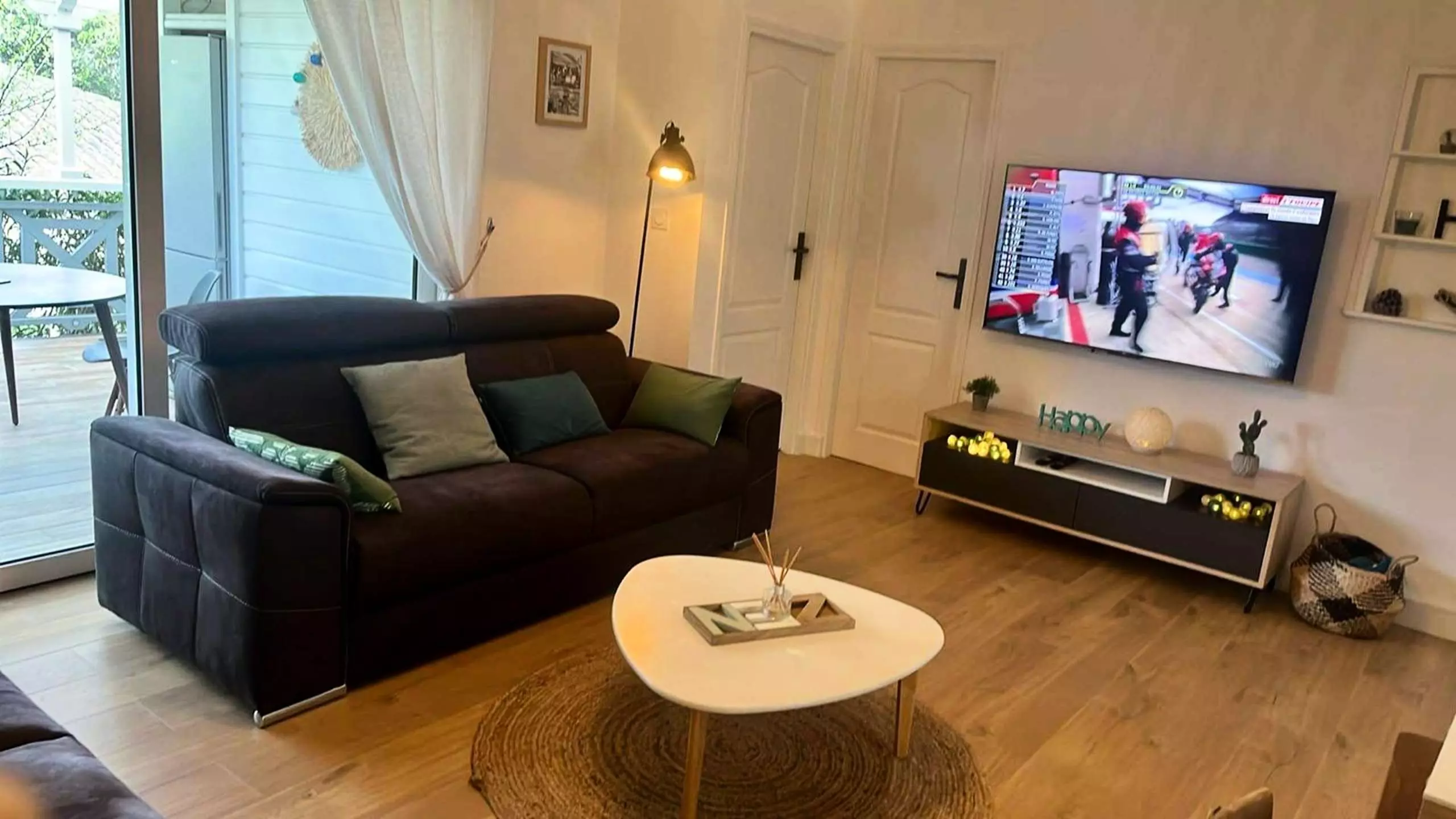 This chalet of approximately 50 m2 has a beautiful equipped kitchen with a pantry opening onto the living room and a dining area, a pleasant 15m² terrace, and 2 bedrooms, one with a double bed (160), and one with a single bed bunked over a double bed (140). You will have a bathroom with WC.