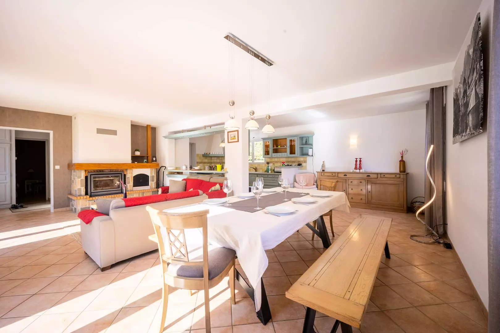 Large living room with open kitchen and terrace (breathtaking view of the valley)
