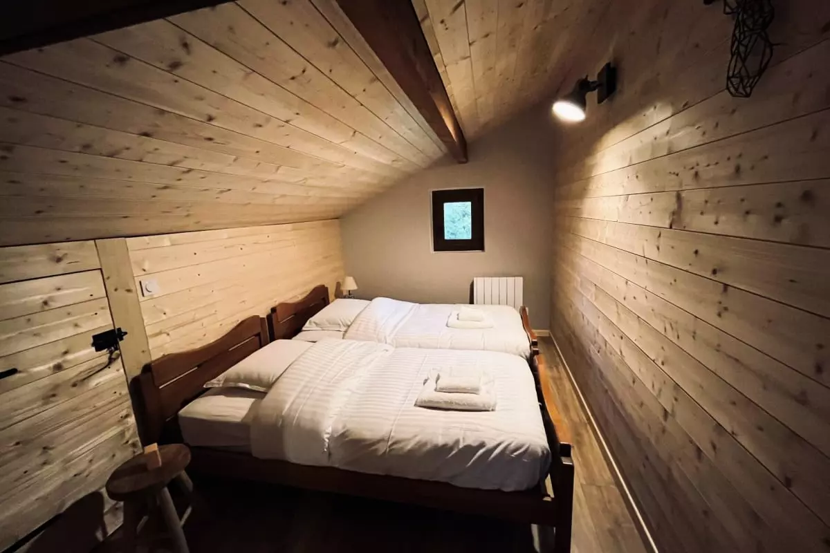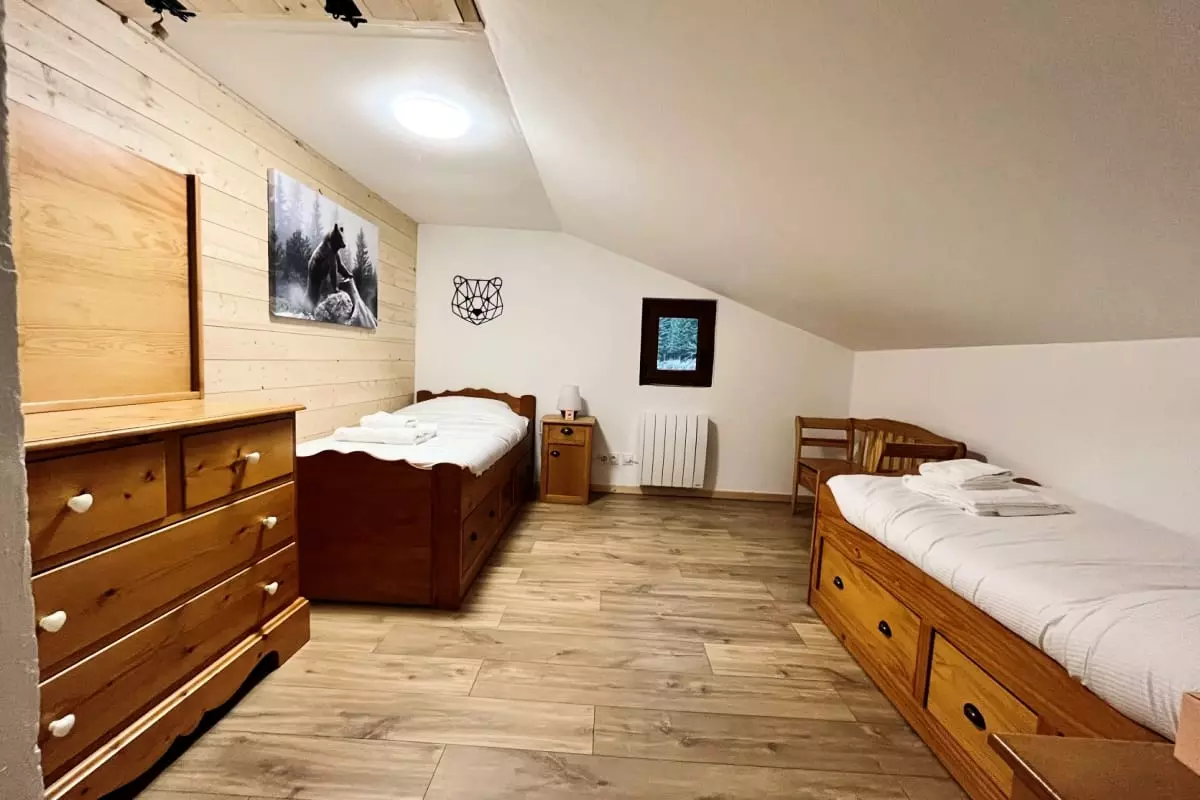 La Feignotte has 7 bedrooms spread over 3 levels, each with 6 single beds and 4 double beds. Four bedrooms have double beds, and three have two single beds each. Two of the three single-bedded rooms are adjoining, sharing access.